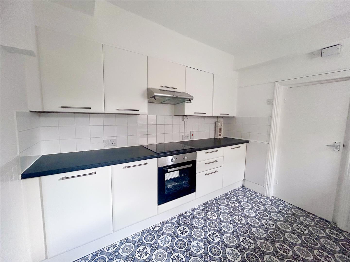 The flat offers a spacious double bedroom with built-in storage, a cosy living room at the rear of the property overlooking the garden, and a recently refurbished kitchen. The kitchen is a good size and features a fitted oven, electric hob, and washing machine, making it both practical and user-friendly.