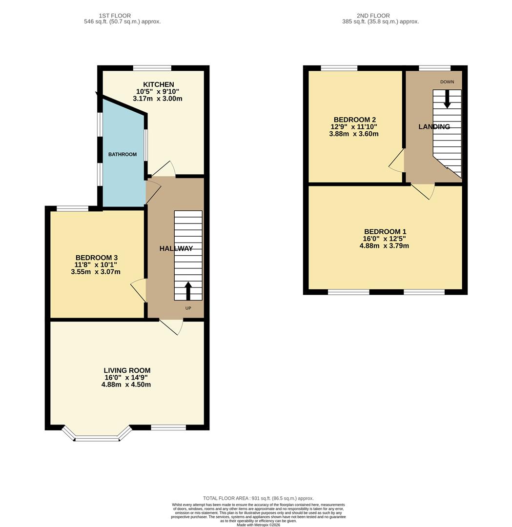 Bedroom 2 3.88m x 3.60m (12'8" x 11'9" )