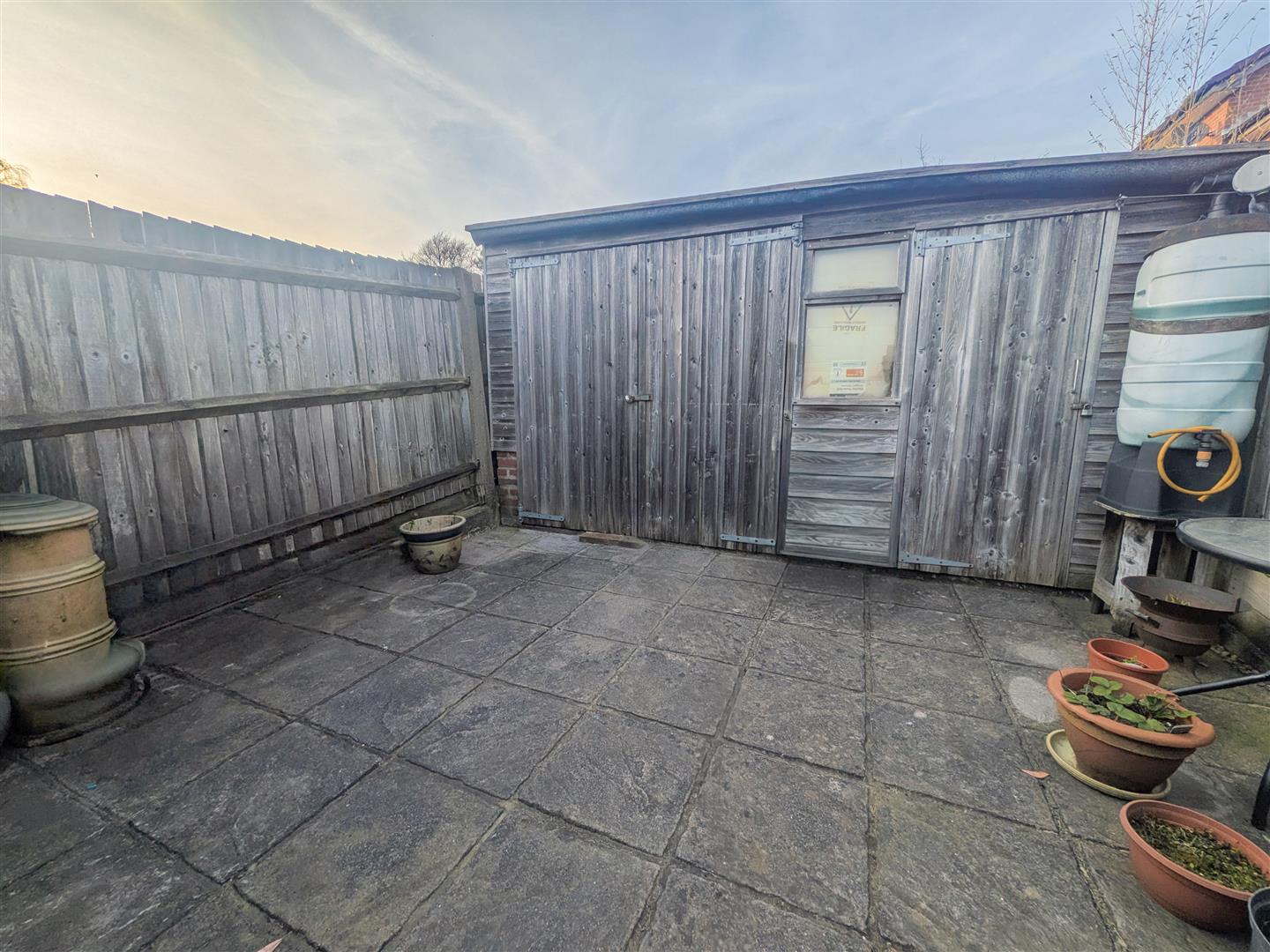 Outside, the property continues to impress with a private, enclosed patio garden designed for easy upkeep—ideal for relaxing or entertaining—alongside the added benefit of two useful storage sheds.