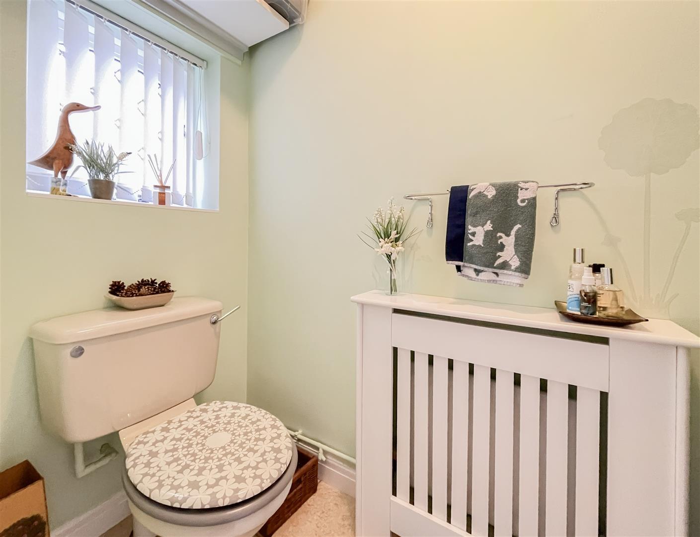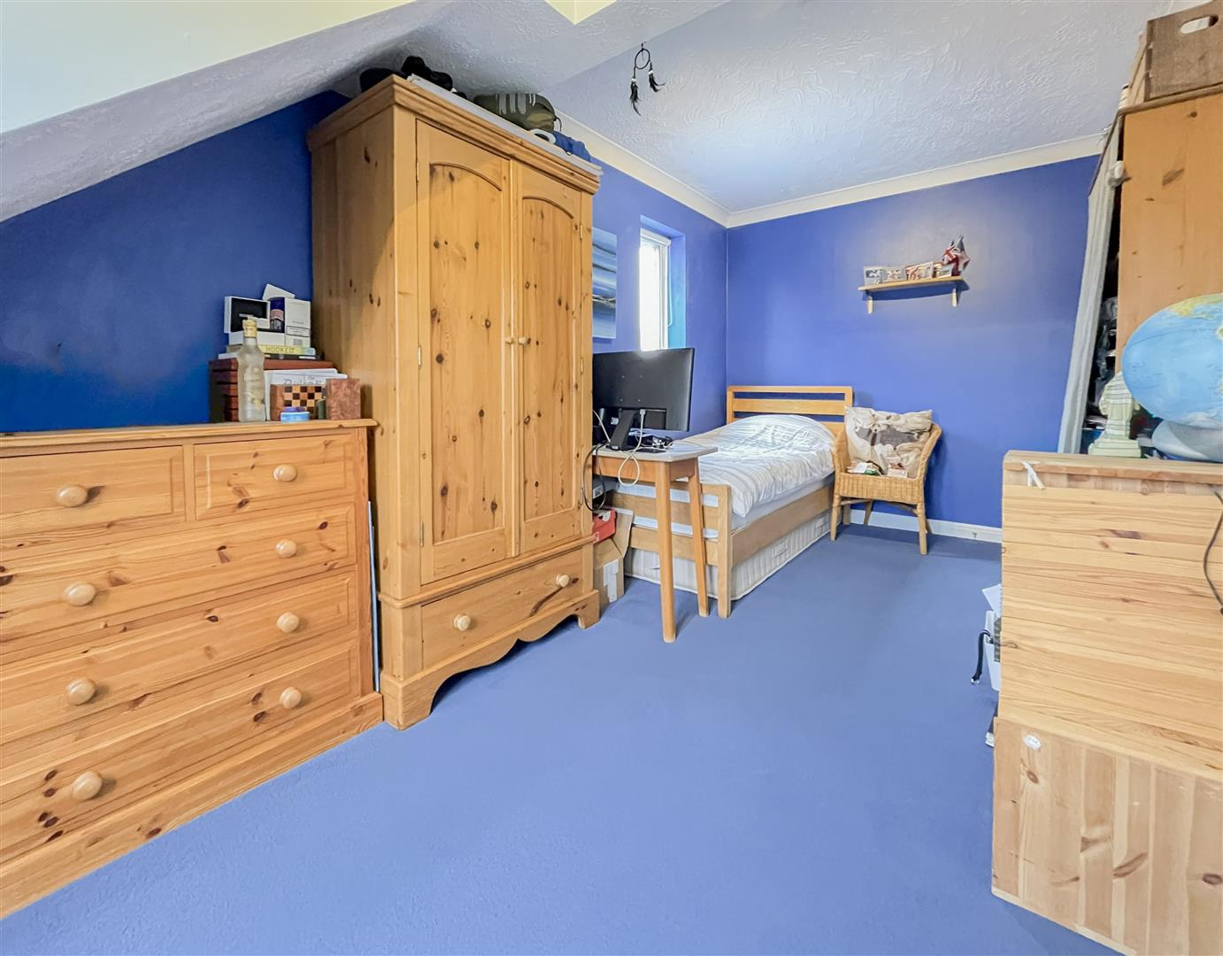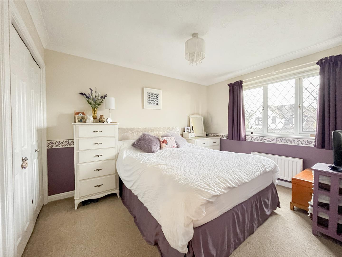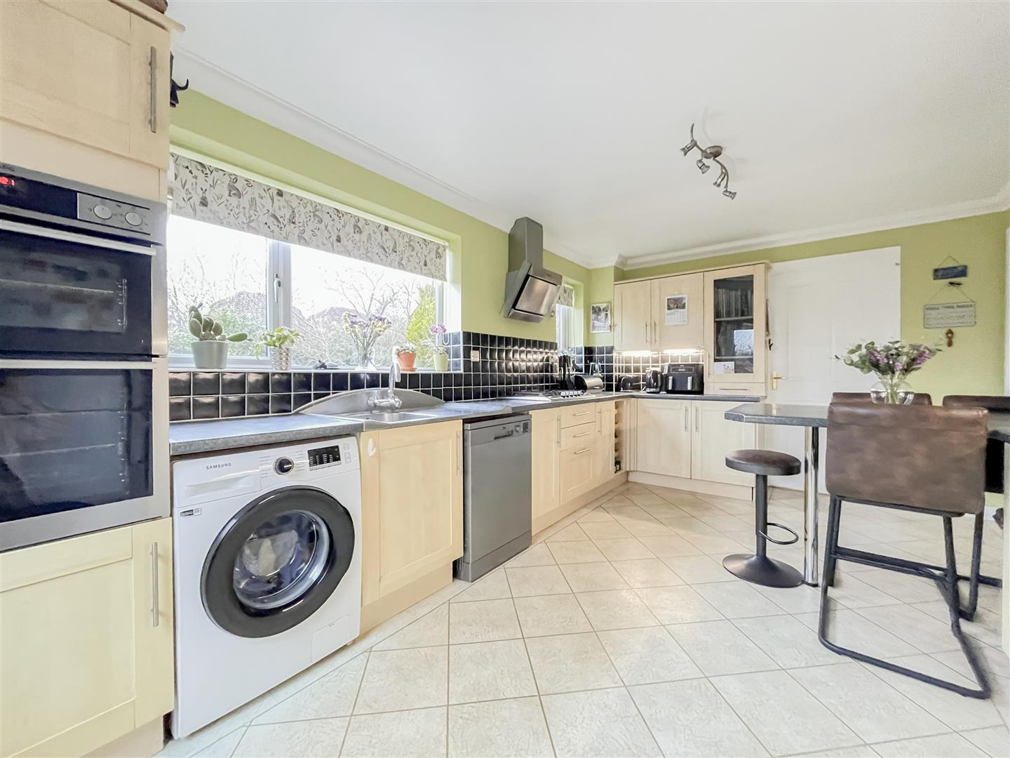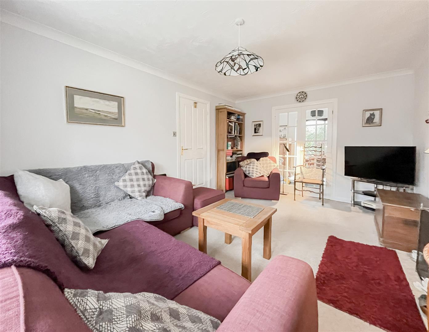 The ground floor accommodation is accessed via a welcoming entrance hallway, with a downstairs cloakroom, a useful under-stairs storage cupboard, and excellent natural flow throughout. The spacious sitting room features a large bay window and a gas fireplace, creating a warm and inviting space to relax. The generous kitchen is fitted with a range of matching wall and base units and includes a breakfast bar, while the separate dining room is accessed via double doors from the sitting room, providing an ideal layout for family living and entertaining. Sliding doors from the dining room open onto the private rear garden. The property also benefits from Trooli superfast broadband, ideal for modern home working.