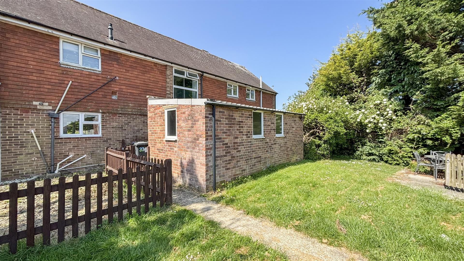 - Brick-built garden store for additional storage