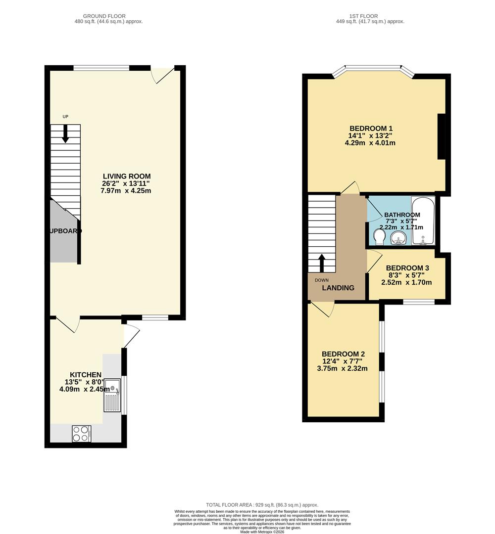 Upstairs, there are three bedrooms, two doubles and one single, along with a family bathroom.