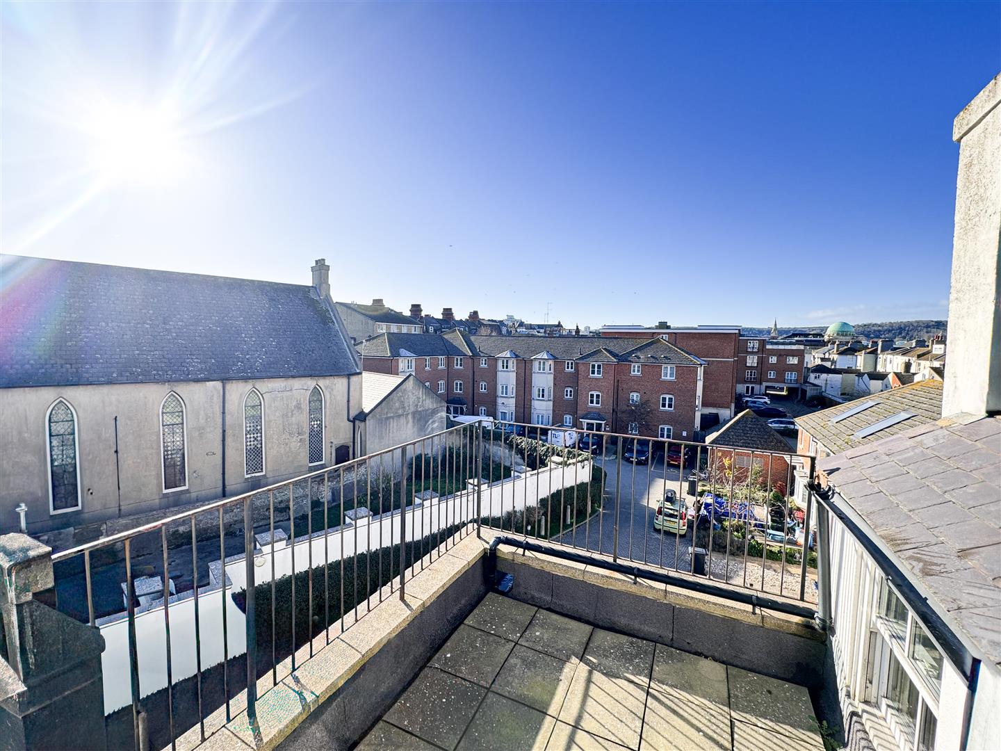 The standout feature is the private rear sun terrace—perfect for relaxing, entertaining, or enjoying a peaceful outdoor space in the heart of town with lovely far reaching views to the rear of the property.