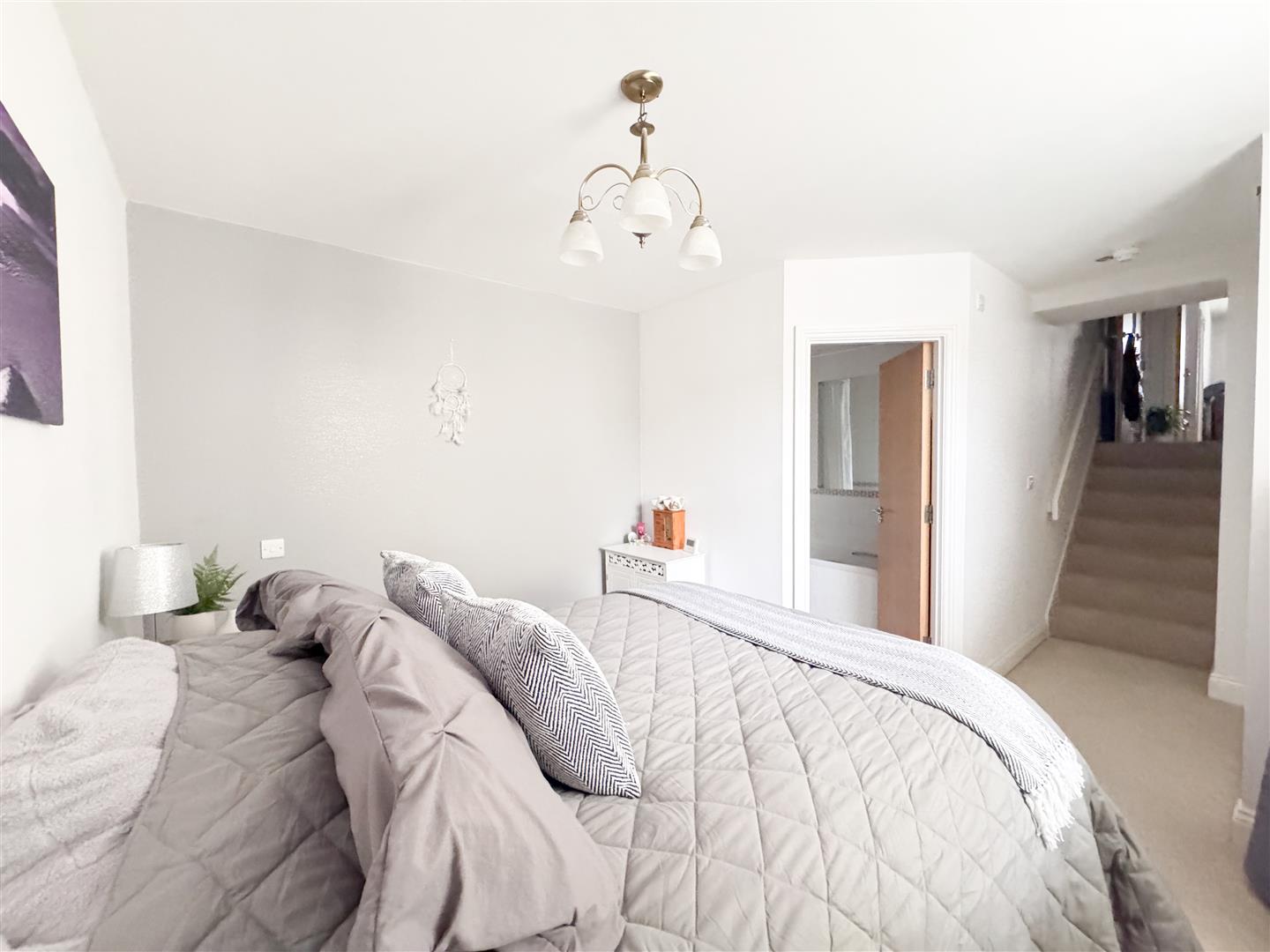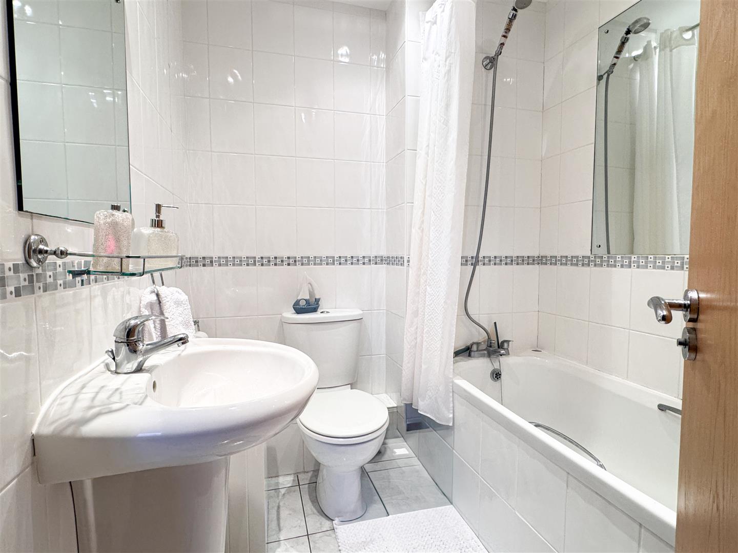 There are two double bedrooms, both well-proportioned, with the main bedroom benefiting from fitted wardrobes and a private en-suite bathroom. A separate shower room serves the second bedroom and guests, providing additional convenience.
