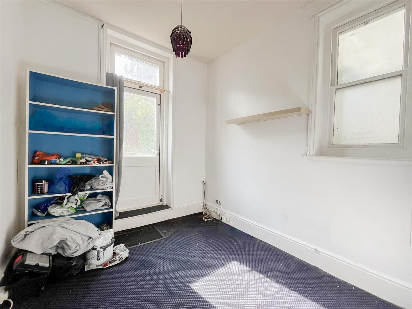 Entrance porch with attractive period tiles; spacious living room with feature fireplace and large bay window overlooking Cornwallis Gardens; spacious bedroom with bay window overlooking the rear courtyard garden; separate kitchen with stained glass window, gas hob, electric oven; bathroom with white suite; second smaller bedroom / office space with door to the rear courtyard garden.