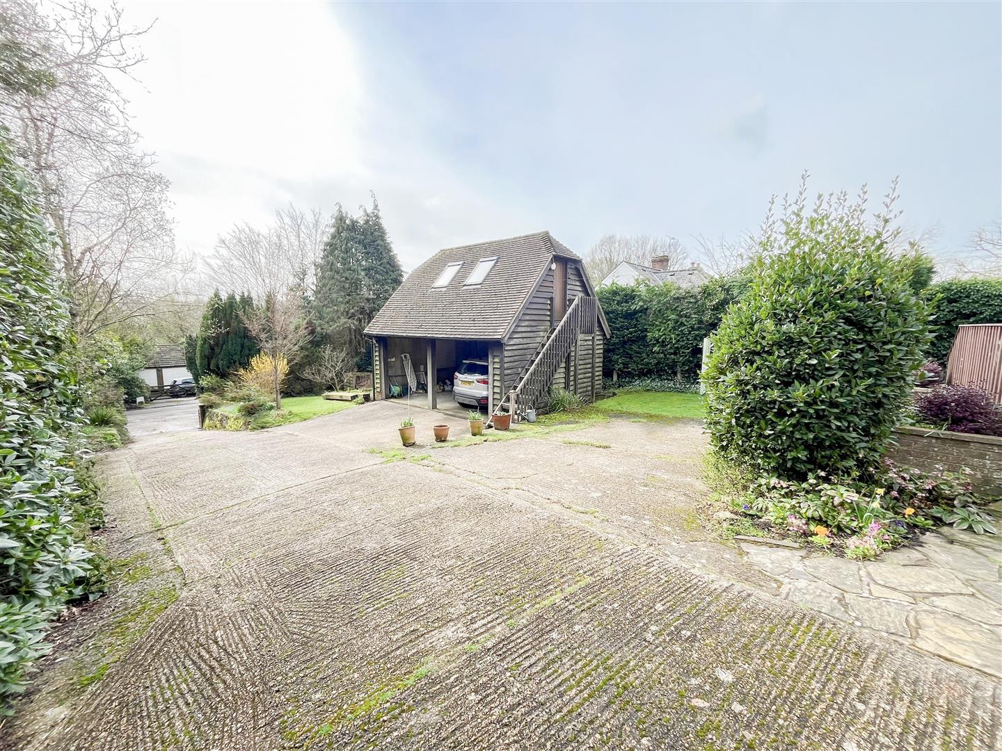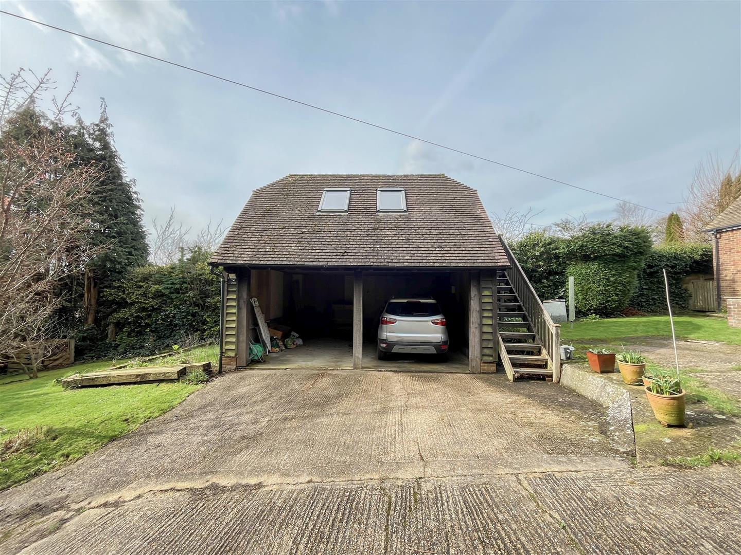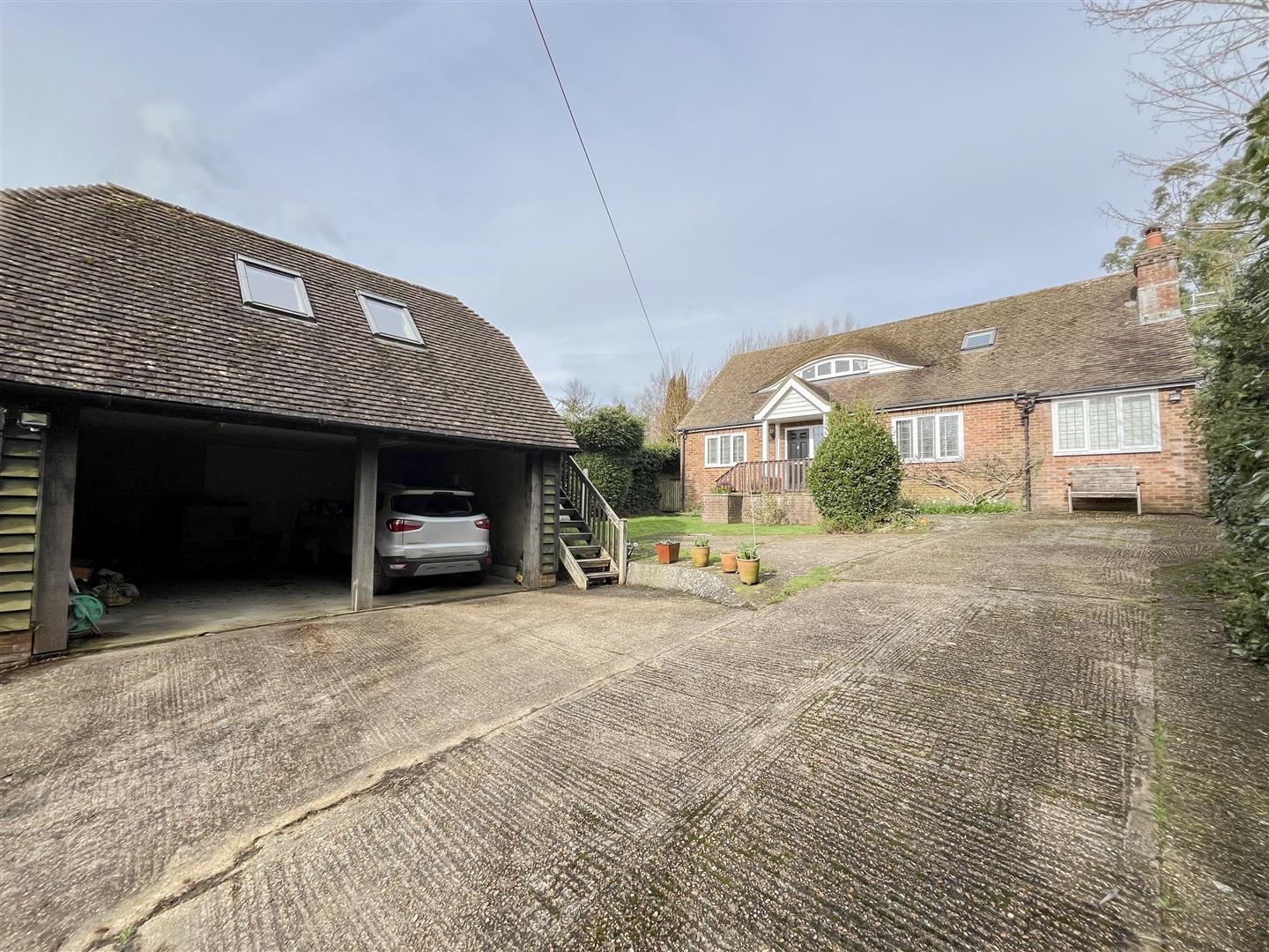 Set in a peaceful semi-rural setting and occupying a generous plot of approximately 0.25 acres, this spacious home offers an abundance of accommodation both internally and externally. The property is approached via a large private driveway leading to a double open carport. Above this sits a highly versatile studio or home office, accessed via an external staircase and complete with its own shower room and WC, making it ideal for those working from home or seeking additional guest space.