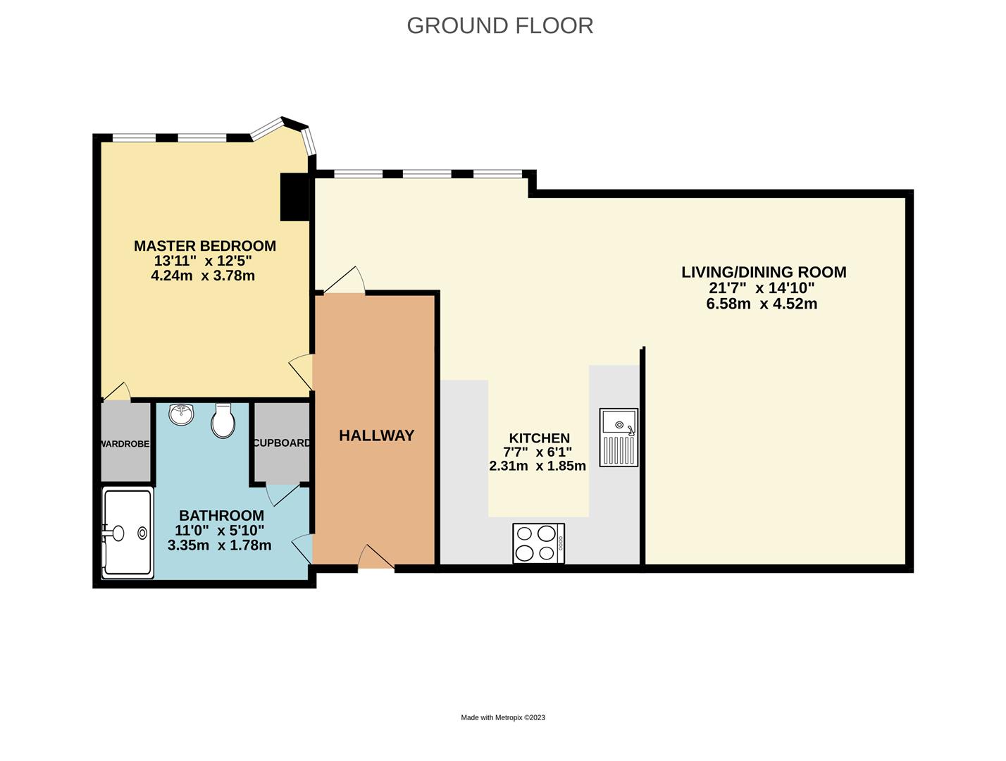 The property comprises a spacious open plan living/dining room with a lovely window allowing plenty of natural light, an open planned fitted kitchen with integrated appliances such as an electric oven and hob, fridge and freezer. The kitchen doesn’t come with a washing machine as the property benefits from a communal laundry room which all tenants have access too. The property also has a double bedroom with fitted wardrobe and a modern fitted shower room with full size shower cubicle.