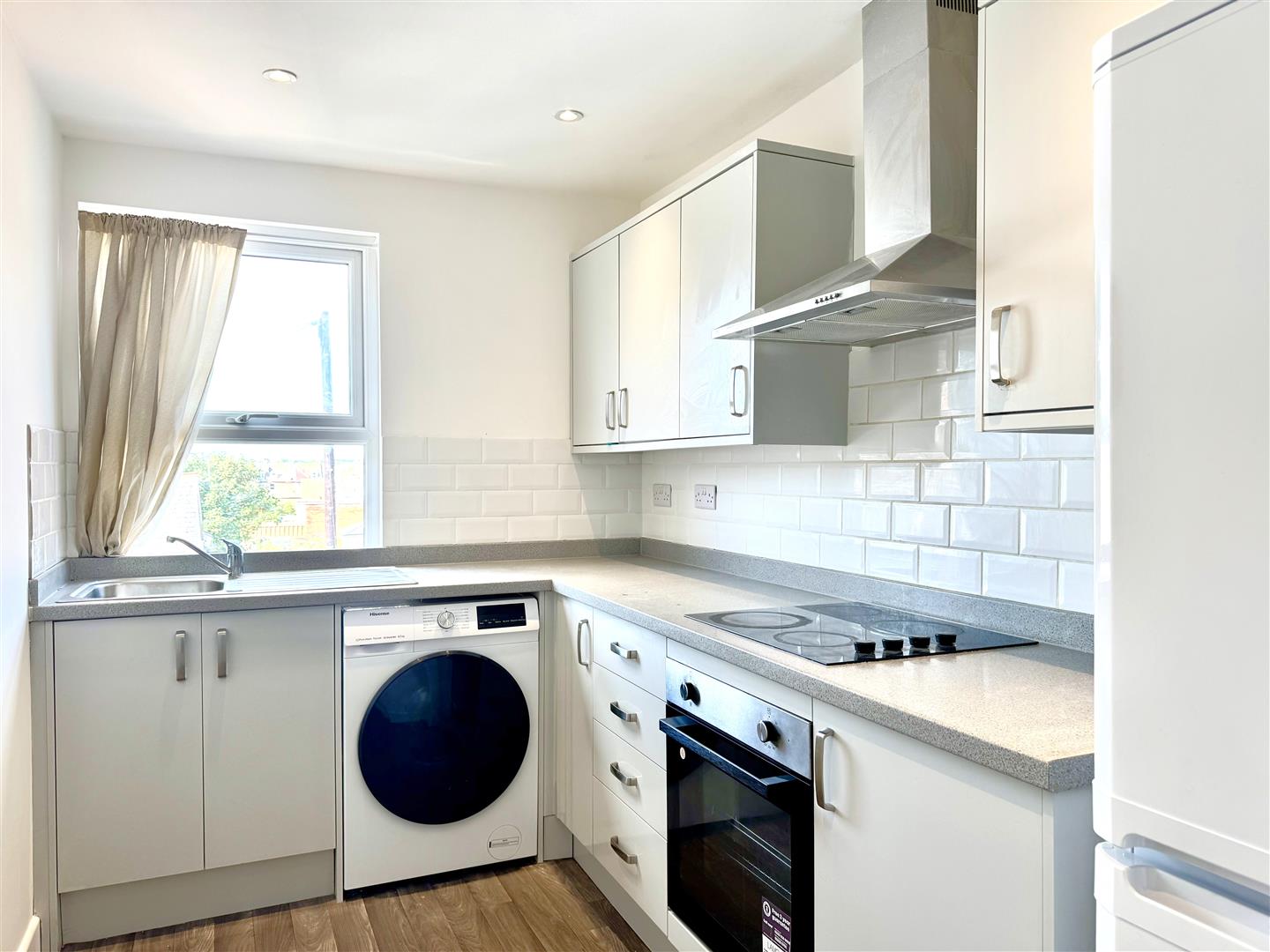 As you enter the property you're welcomed with a modern fitted kitchen with integrated oven & hob, washing machine and tall freestanding fridge freezer included and white suite family bathroom on the ground floor. Proceeding to the first floor there are two good sized bedrooms and a spacious living room with a lovely bay window allowing plenty on natural light and a very spacious master bedroom on the top floor.