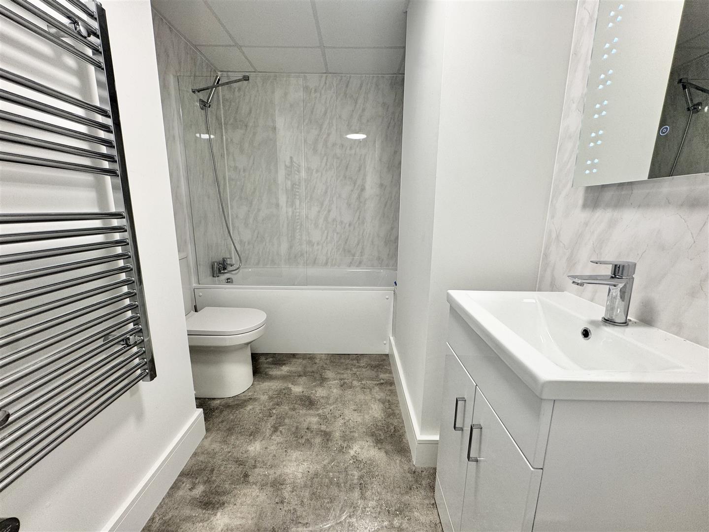 Both bedrooms are well-proportioned doubles, complemented by a sleek bathroom featuring a shower over the bath. The interior is finished to a high standard throughout, with modern electric heating and a secure entry intercom system for added peace of mind.