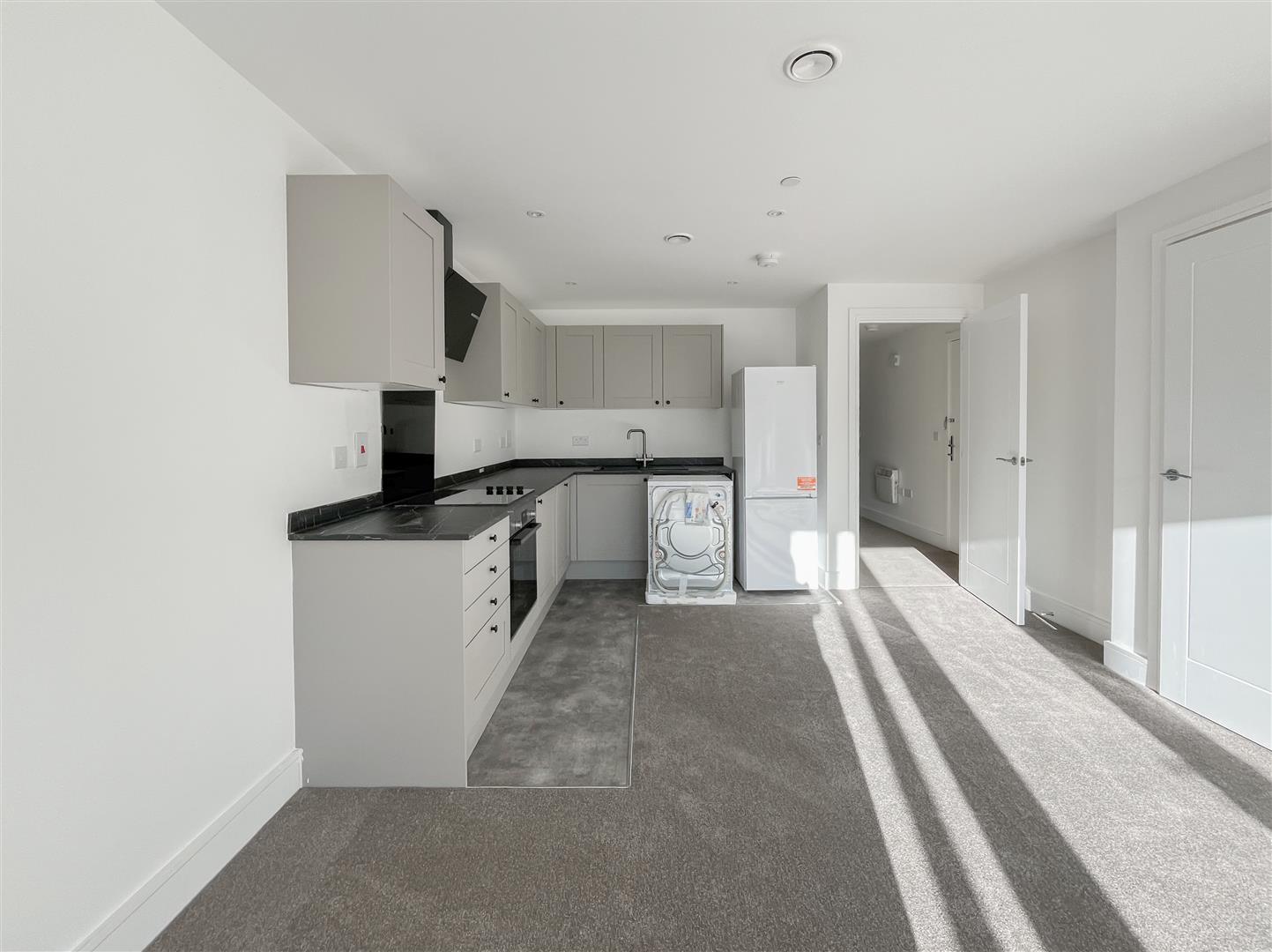 The apartment provides a bright and inviting open-plan living space with a modern fitted kitchen including a fridge freezer, washer dryer, and integrated dishwasher, oven and hob . Double patio doors lead directly from the living area to a private balcony — the ideal spot to enjoy your morning coffee, relax with a book in the afternoon sun, or unwind with a glass of wine at the end of the day.