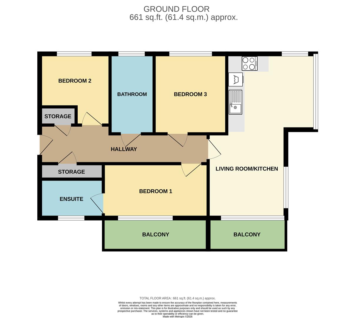 The master bedroom is a generous double with its own balcony and a en-suite shower room. Two additional bedrooms and a family bathroom with bath and overhead shower complete the accommodation.