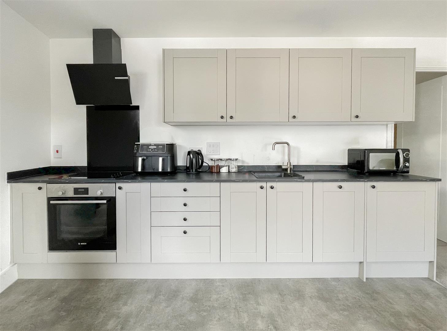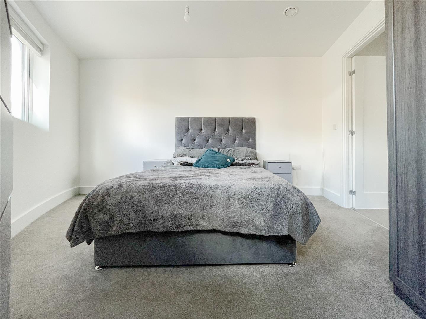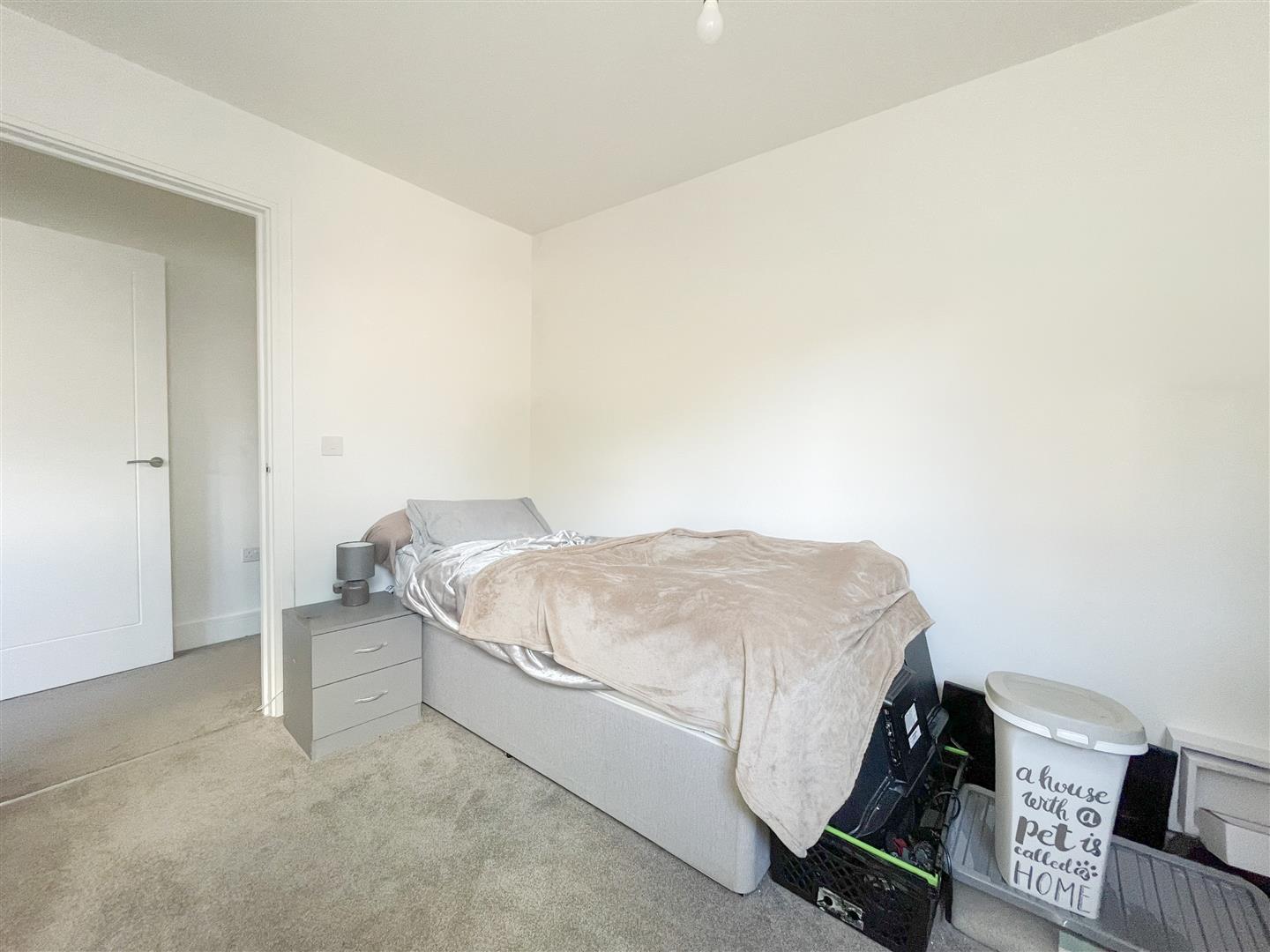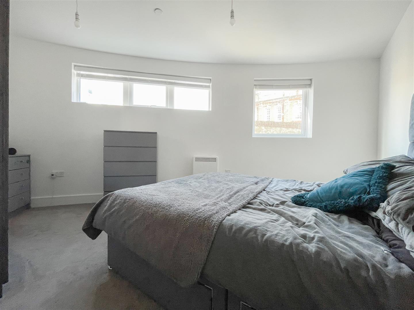 The property features a bright open-plan living area with a modern fitted kitchen that includes a washing machine, fridge/freezer, dishwasher, oven and hob. Two sizeable bedrooms and a family bathroom with shower over bath. The living room has doors that lead to a Juliet balcony.