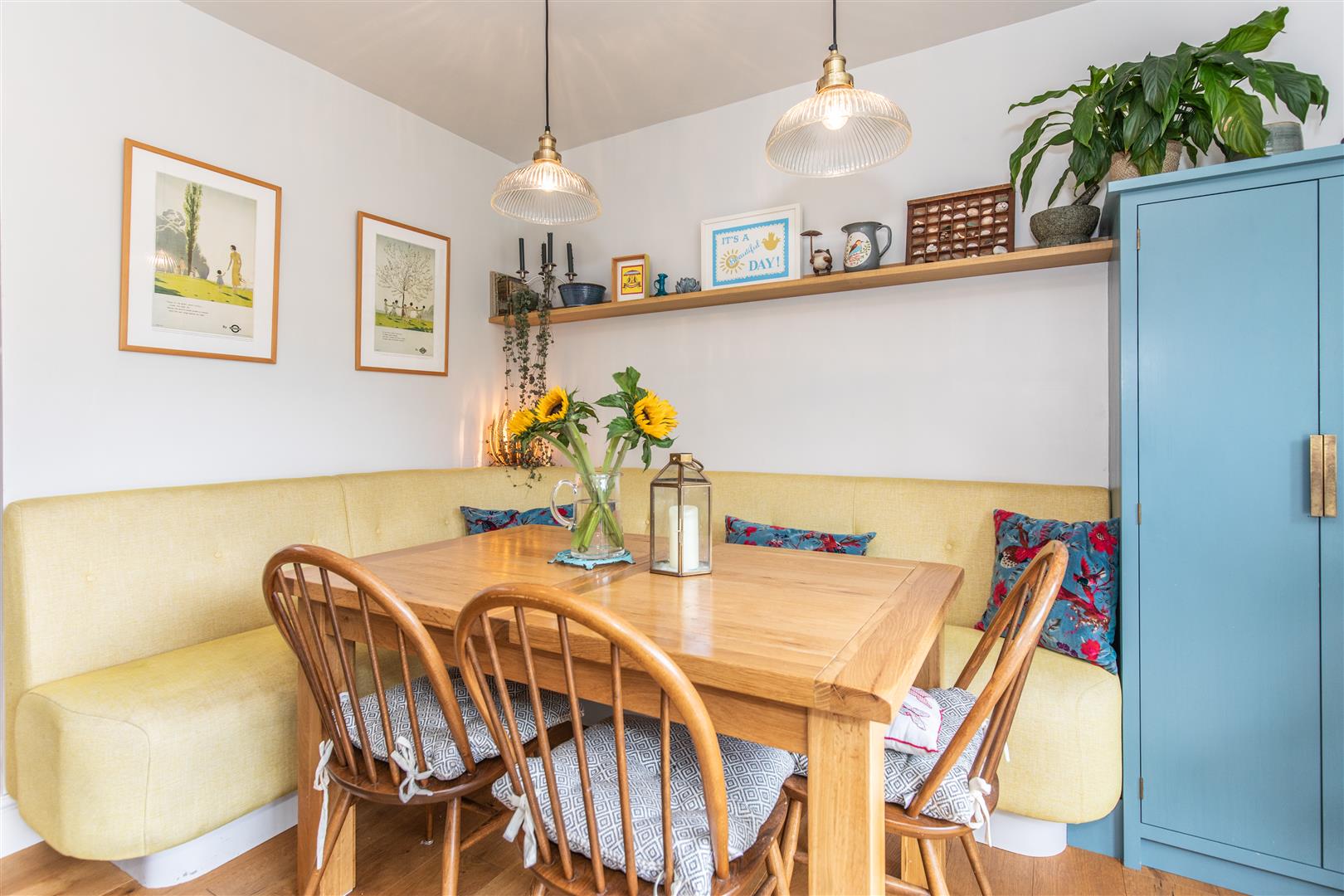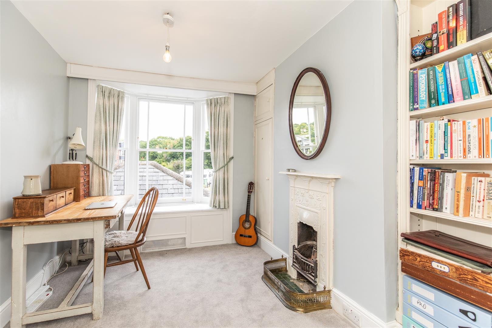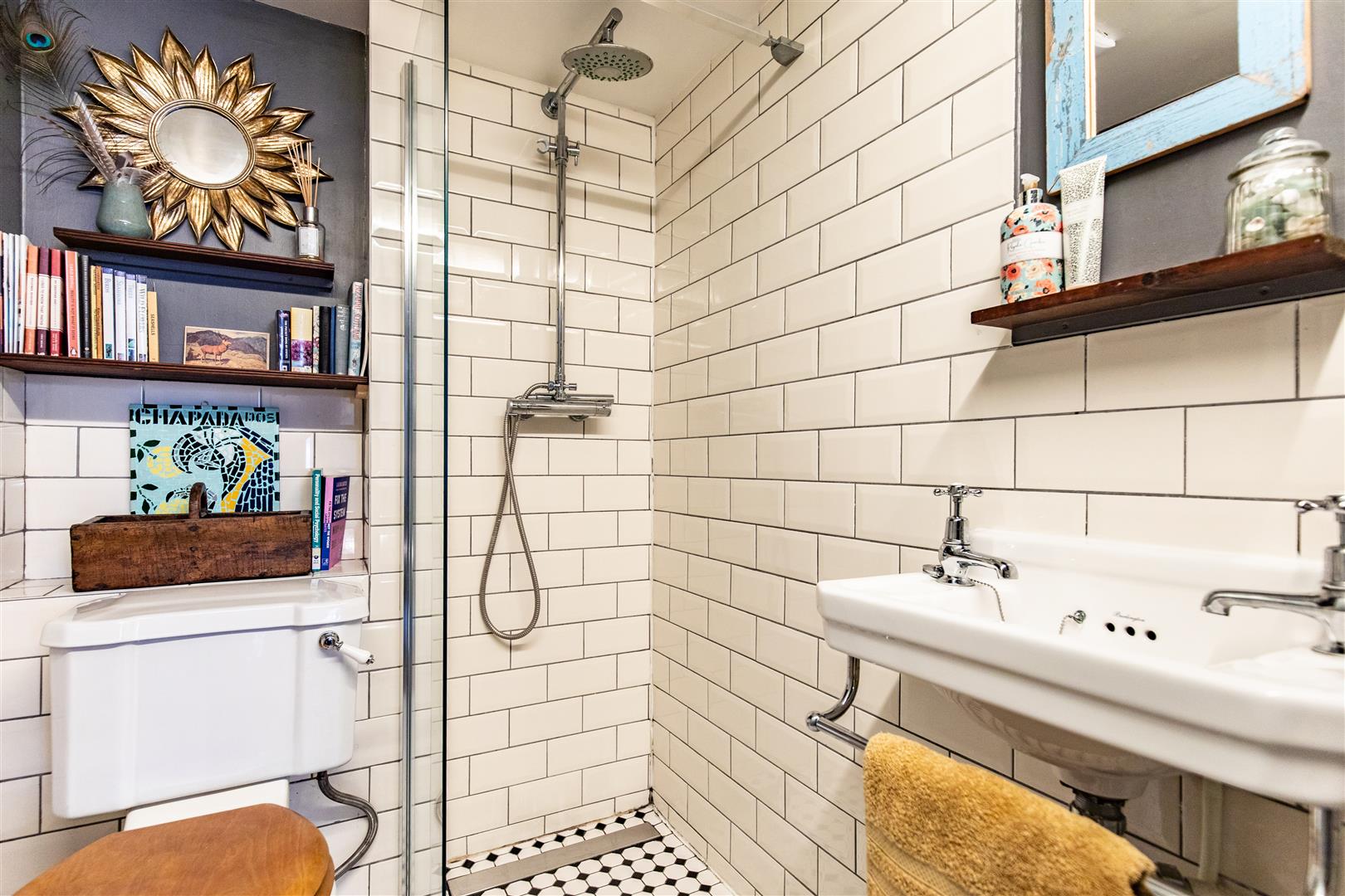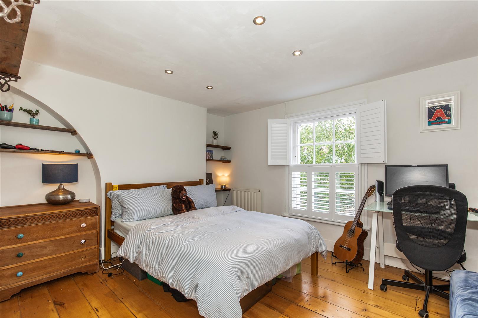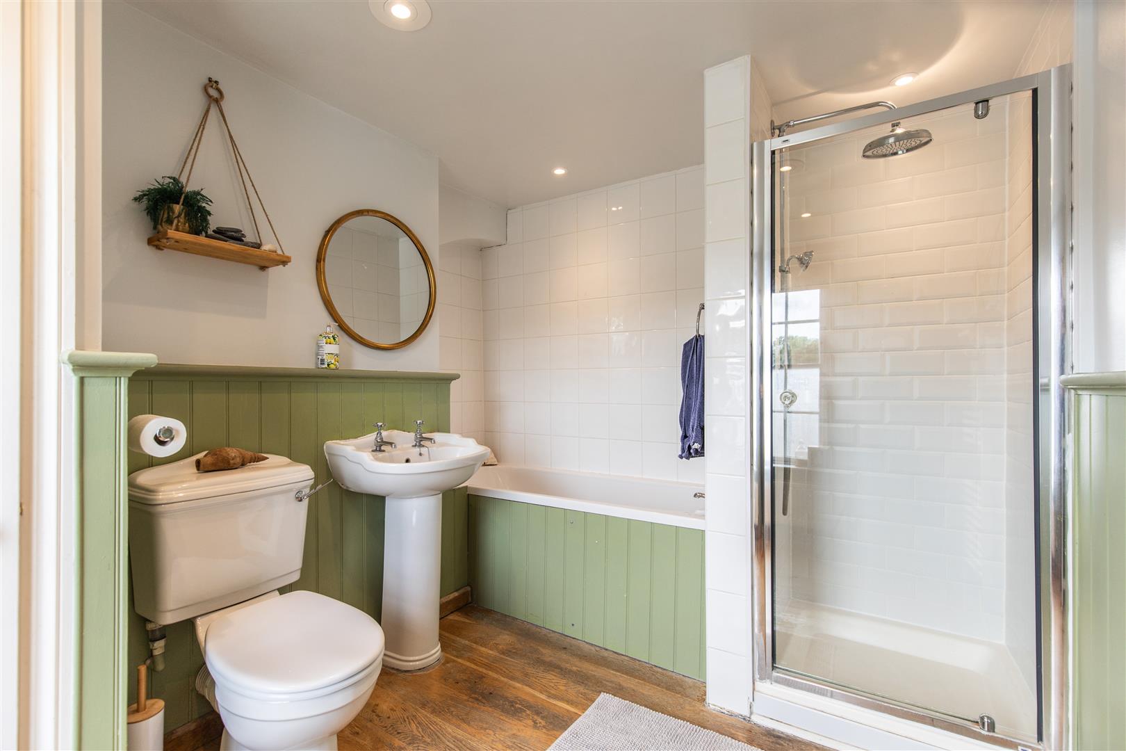 Second Floor: Family Bathroom with shower cubicle, panelled bath, pedestal handwash basin, low level WC, airing cupboard with Vaillant Boiler; Bedroom 2 with fitted shelves, solid wood floors.