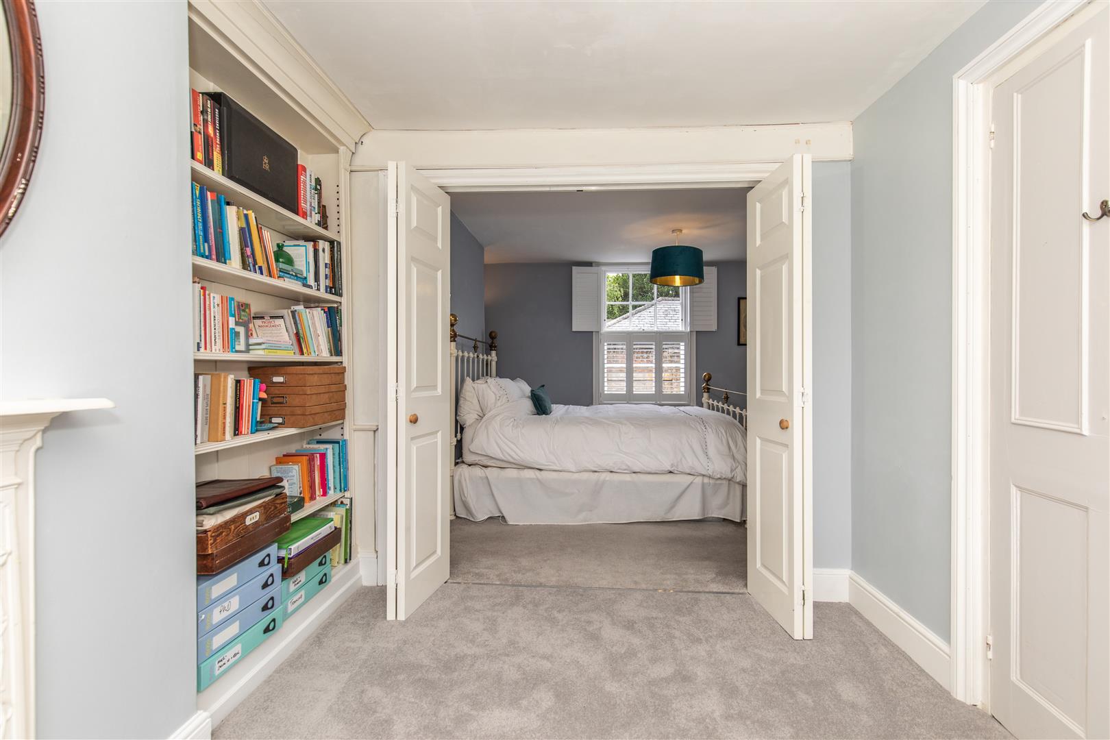 First Floor: Bedroom 1 with fitted wardrobe with fitted cupboards to each side, alcoves with fitted shelves and cupboards; bifold doors to Bedroom 3/Dressing Room with bay window, window seat with storage, feature fireplace, fitted cupboards.