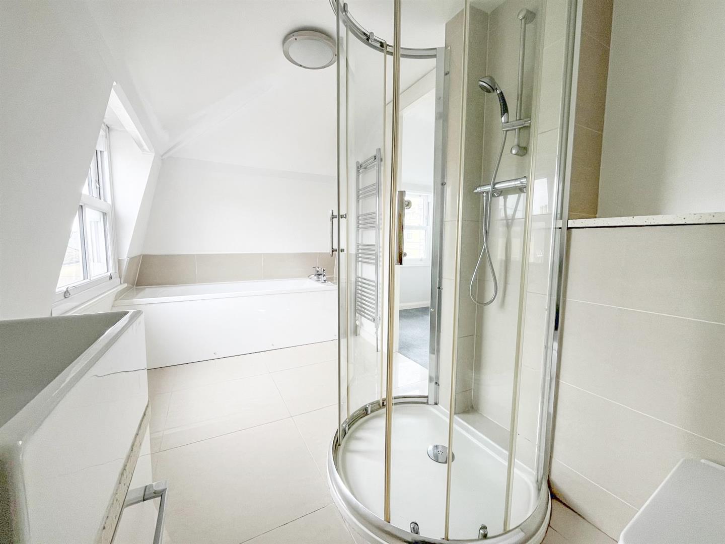 - Family bathroom featuring both a bath and separate shower enclosure