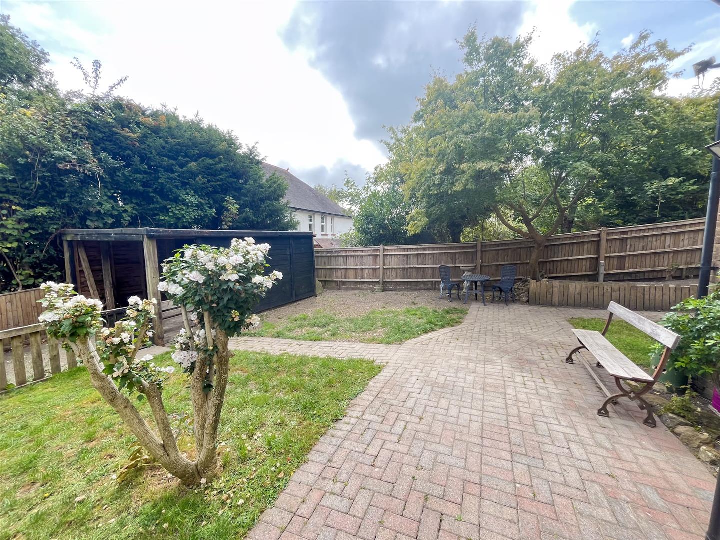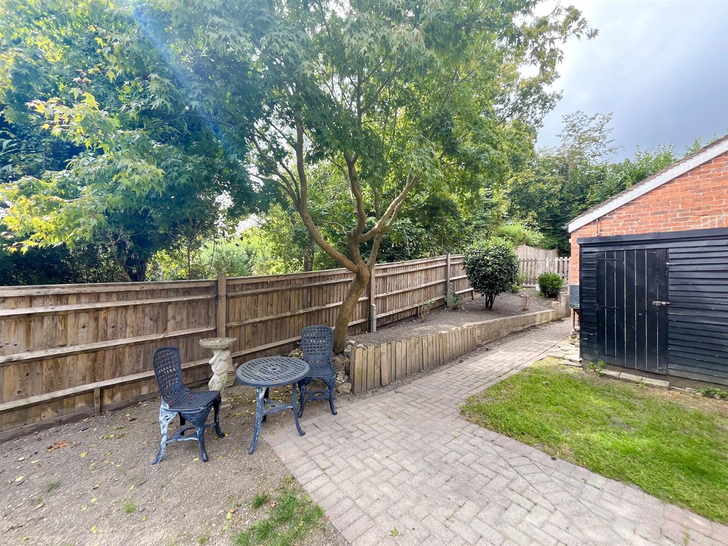 The gardens are to three sides and provide multiple areas to sit out and enjoy this private tucked away location. To the front is a lovely lawned area, with a bricked terrace which wraps around to the side, where there is a raised wildflower bed.