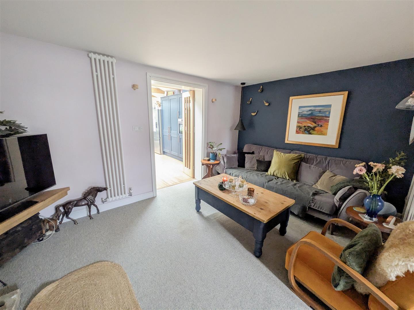On arrival, you are welcomed by ample off-road parking, setting the tone for the generous accommodation within. The front door opens into an entrance porch, leading through to a versatile study/snug — an ideal space for those working from home. This flows seamlessly into a cosy lounge featuring a charming fireplace with inset log burner, creating the perfect sanctuary for winter evenings.