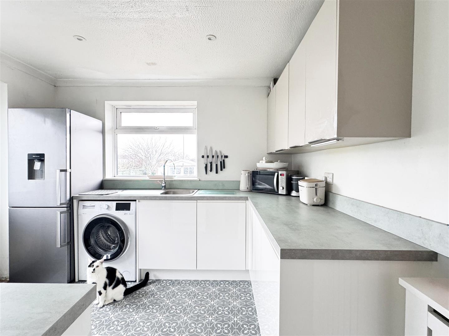 Inside, the spacious living room/dining area is light and welcoming, providing an ideal space for both relaxing and entertaining guests. The fitted kitchen is thoughtfully designed with ample worktop and cupboard space, making it perfect for everyday use, and features a door leading directly into the rear garden, allowing for easy access to outdoor entertaining, gardening, or simply enjoying the sunshine.