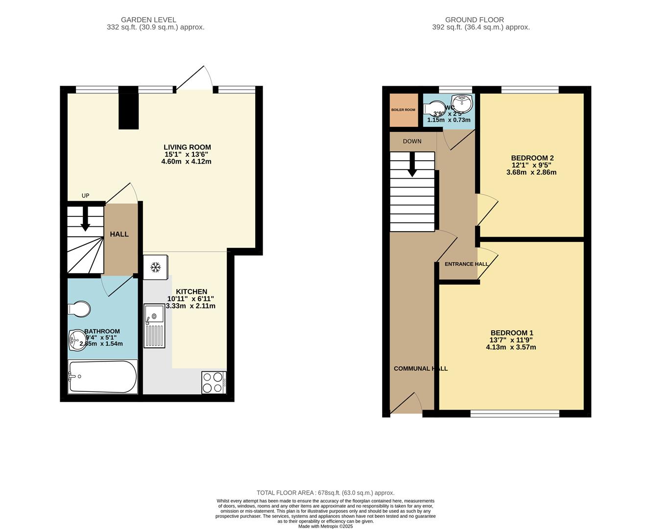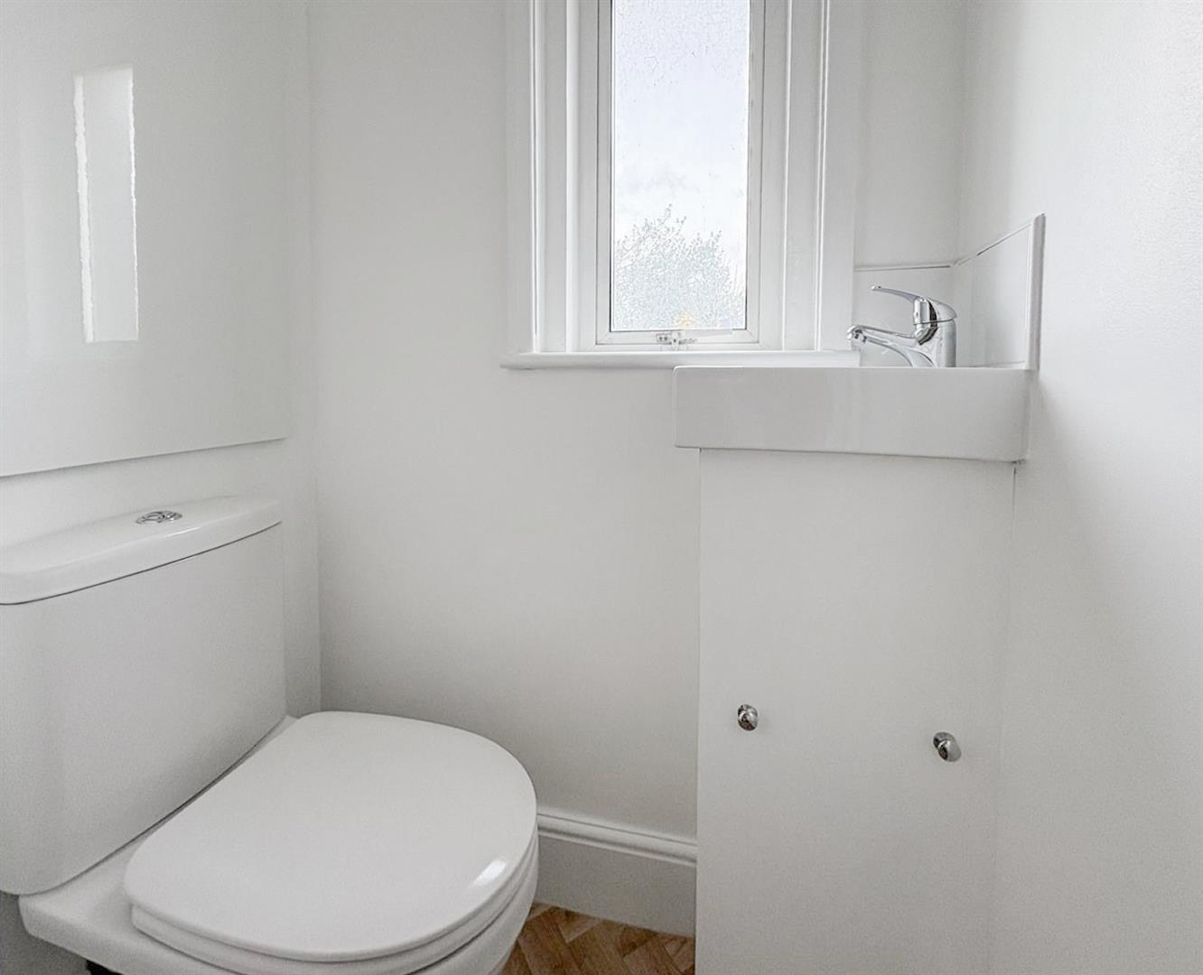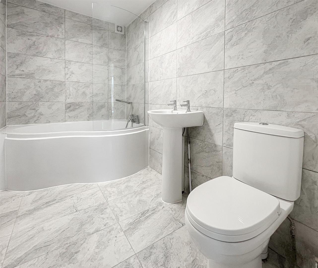 The property features two spacious double bedrooms and a convenient WC on the entrance level. Downstairs, you’ll find a stunning family bathroom, fully refurbished with high-gloss tiles, a bath with shower over and glass screen, WC, and hand basin.