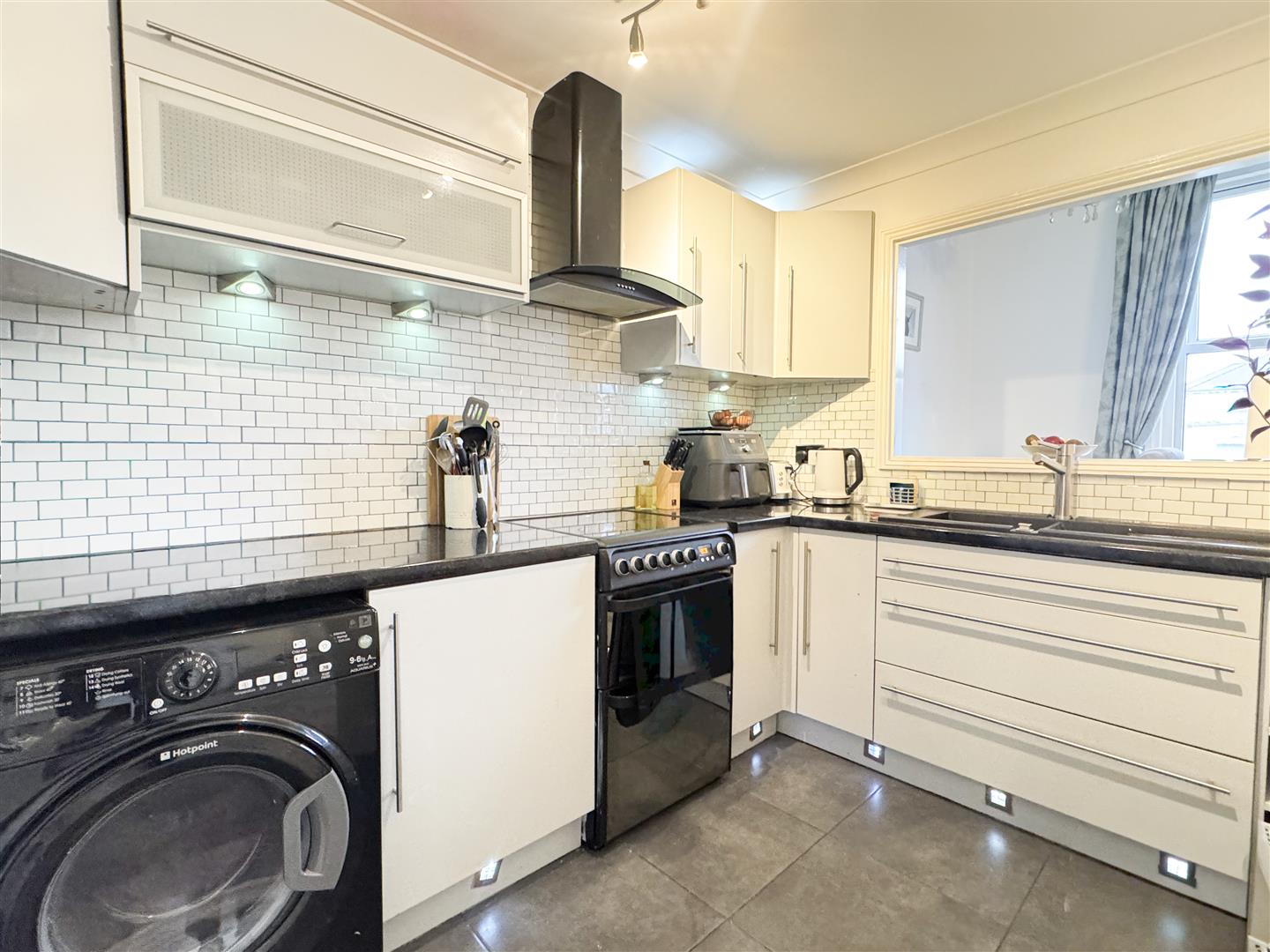 To the front of the property is a bright and sizeable open-plan living and dining area and flows seamlessly into a modern fitted kitchen. This space is well designed for both everyday living and entertaining, offering ample room for furnishings and dining arrangements.