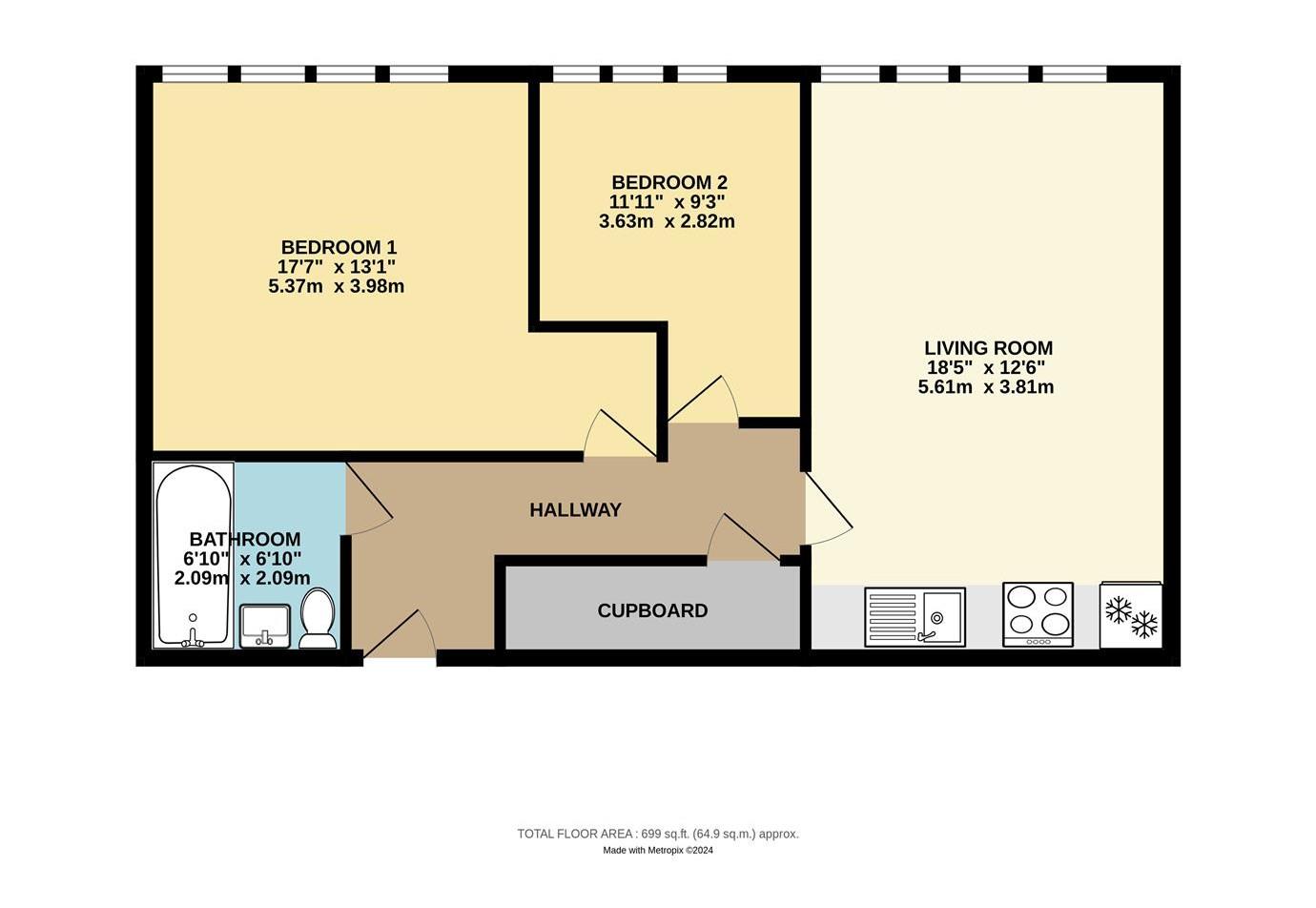 The apartment is finished to a high standard and benefits from a newly fitted modern kitchen with integrated appliances, including a washer/dryer, fridge/freezer, dishwasher, electric oven and hob. The property also features fitted blinds and contemporary bathroom suites.