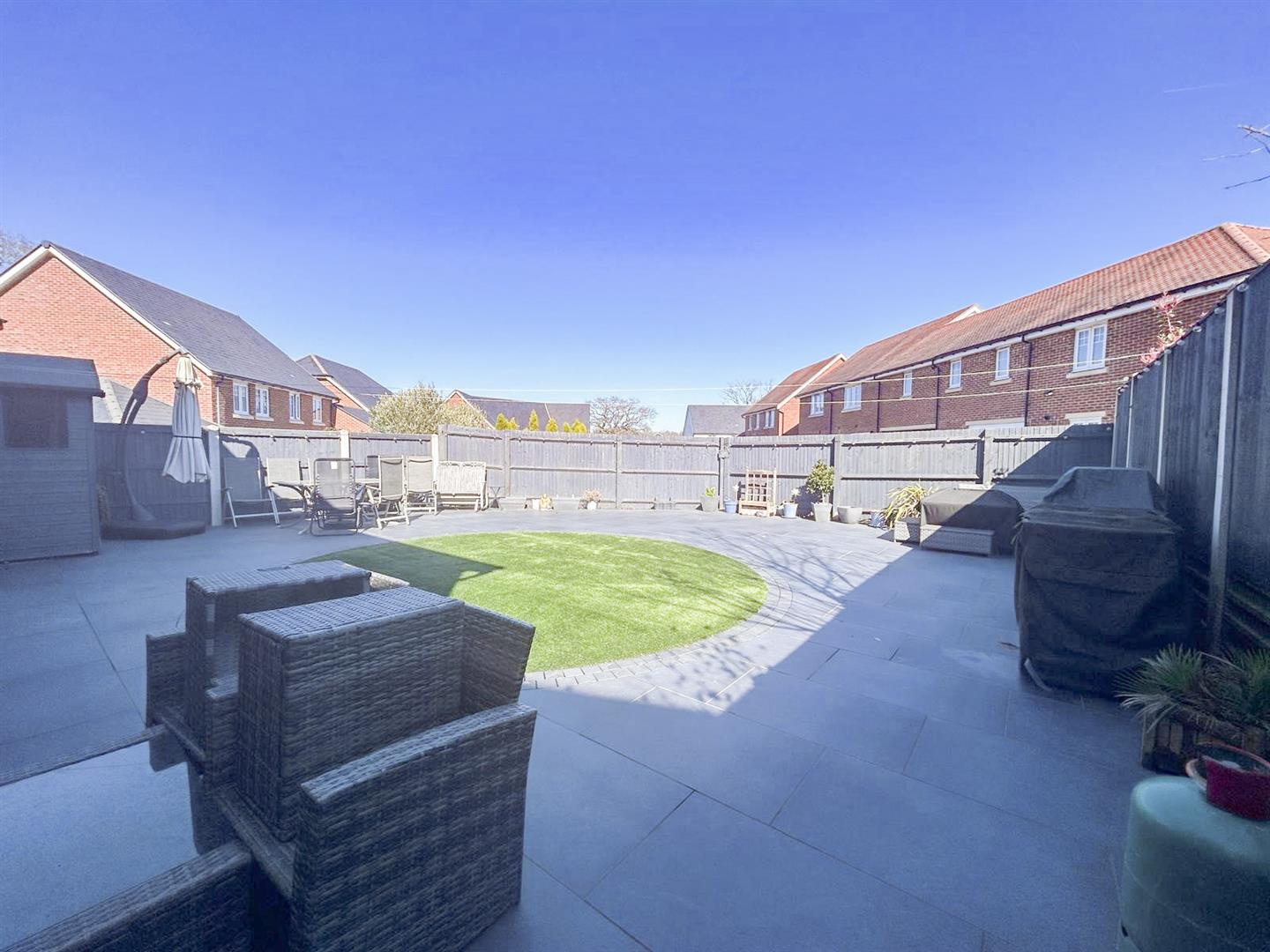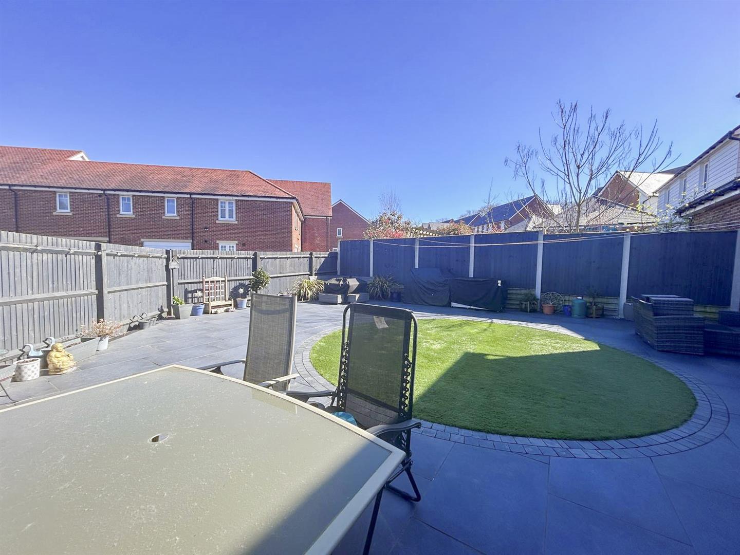 - Landscaped, private rear garden with patio area and low-maintenance artificial lawn