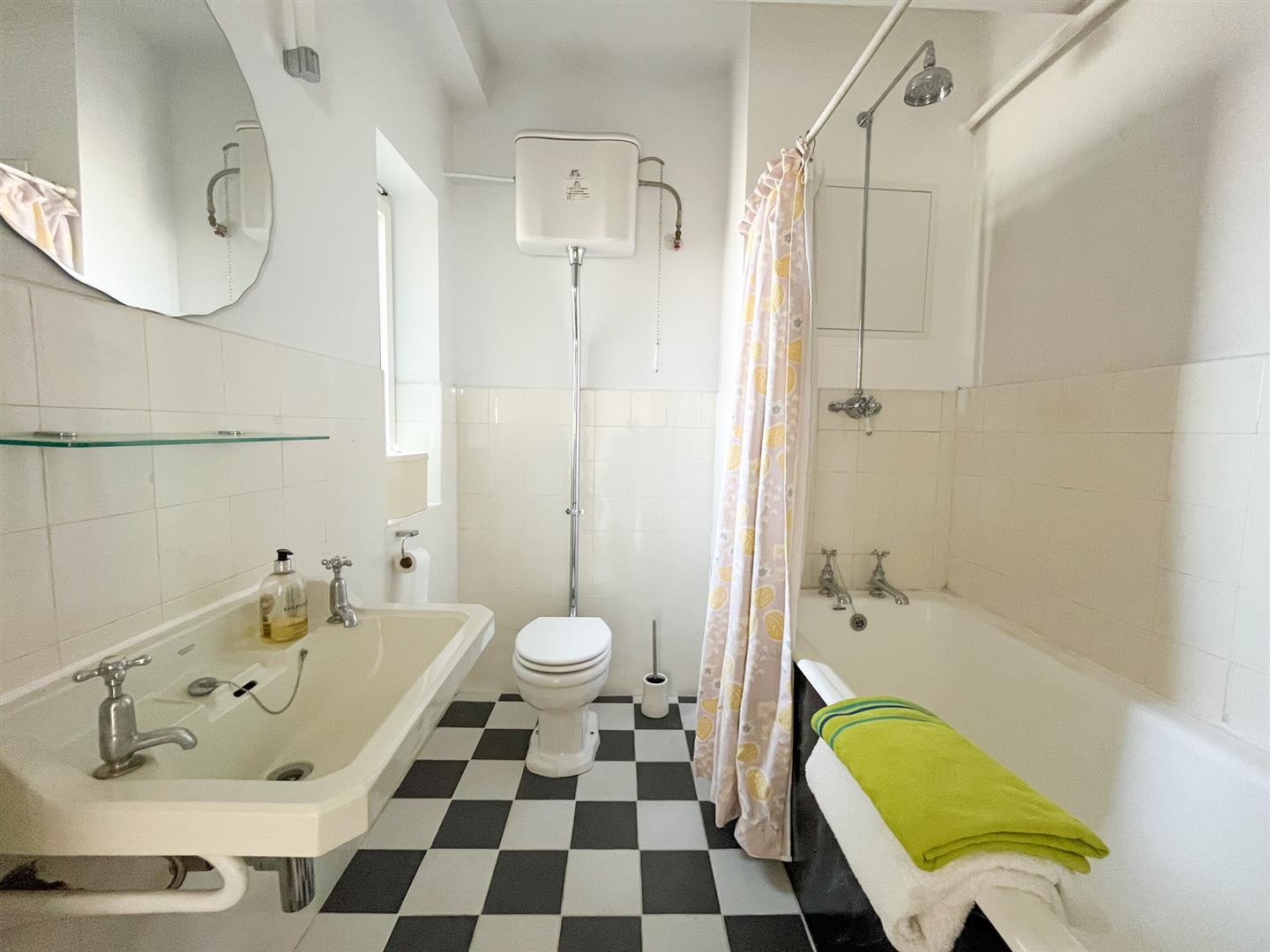 There are two bright spacious bedrooms. One overlooks the seafront, the other overlooks the town rooftops and churches.