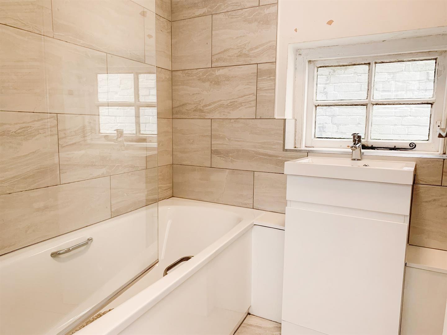 - Modern bathroom with shower over bath