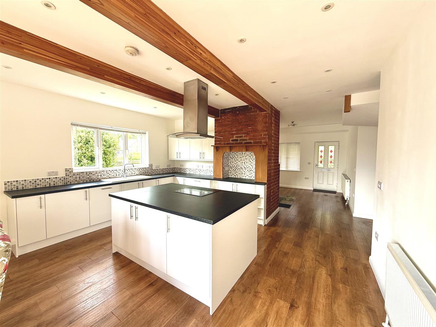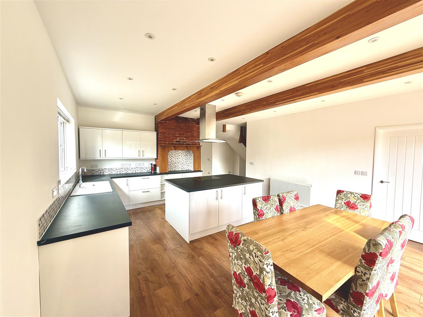 Upon entering the property, you are welcomed into a large open plan living space. The living area benefits from a log burner set with a bricked feature wall as well as a unique oval area off the living room. There is a modern fitted kitchen with integrated dishwasher and fridge, set within the central island is an electric oven with electric hob. Off the kitchen is a utility room with a range of cupboards for storage as well as space for a tumble dryer and washing machine. The room also offers space for a fridge/freezer.
