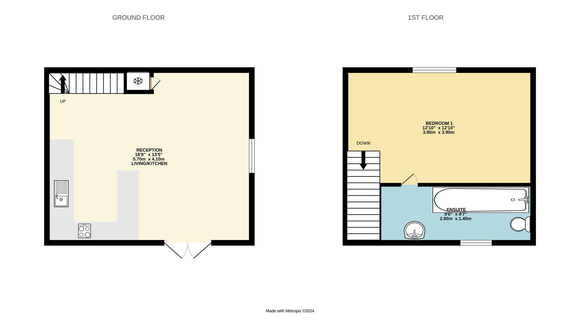 Upstairs comprises the generously sized bedroom and modern ensuite fitted with a bath and shower.