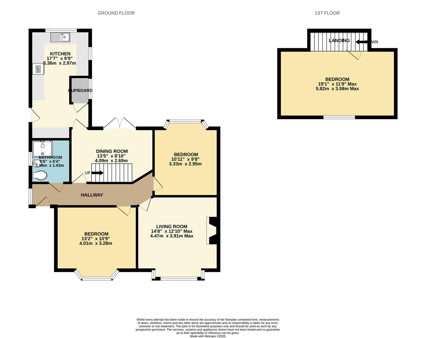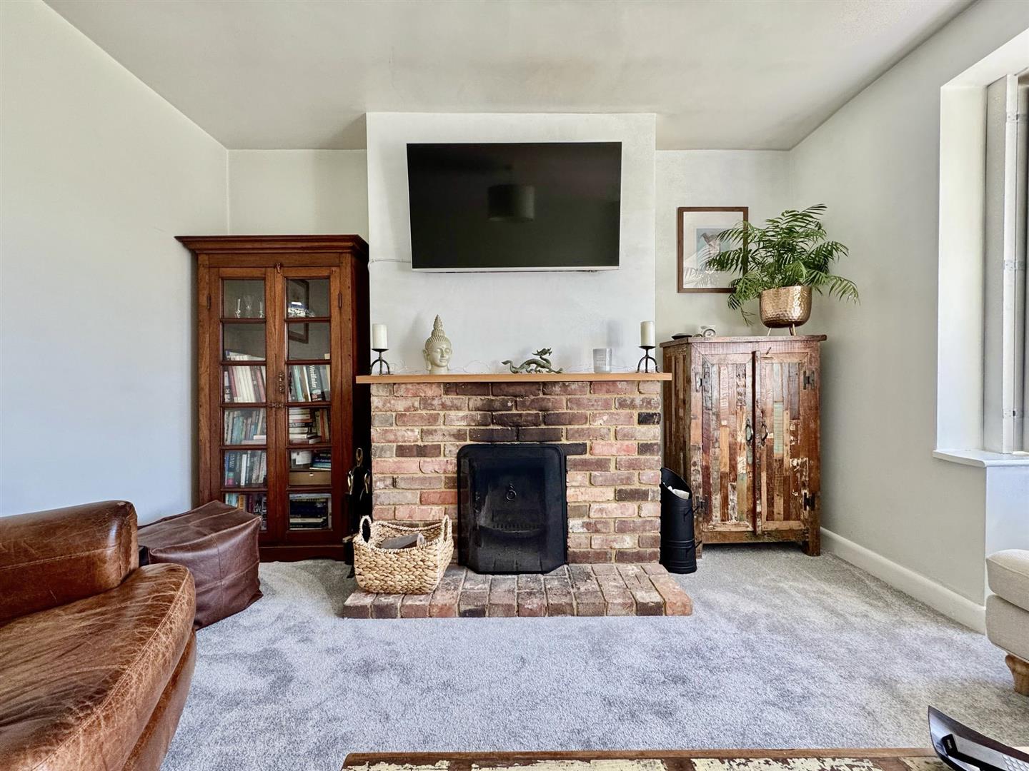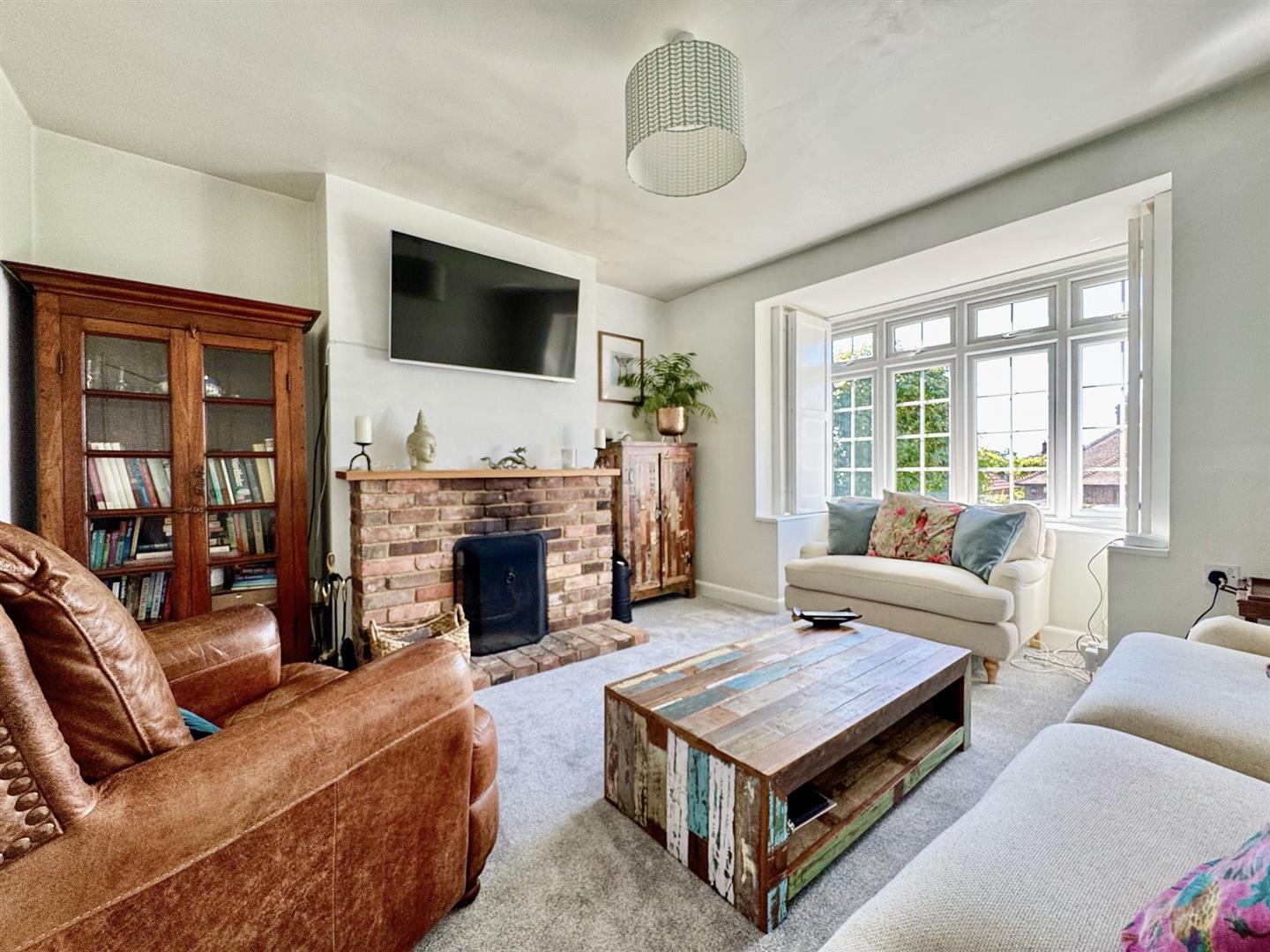 The property offers versatile and well-proportioned accommodation throughout, comprising three bedrooms — two on the ground floor and a third located on the first floor, accessed via stairs from the dining room. The generously sized living room features a charming bay window and a characterful open fireplace, creating a warm and inviting atmosphere.