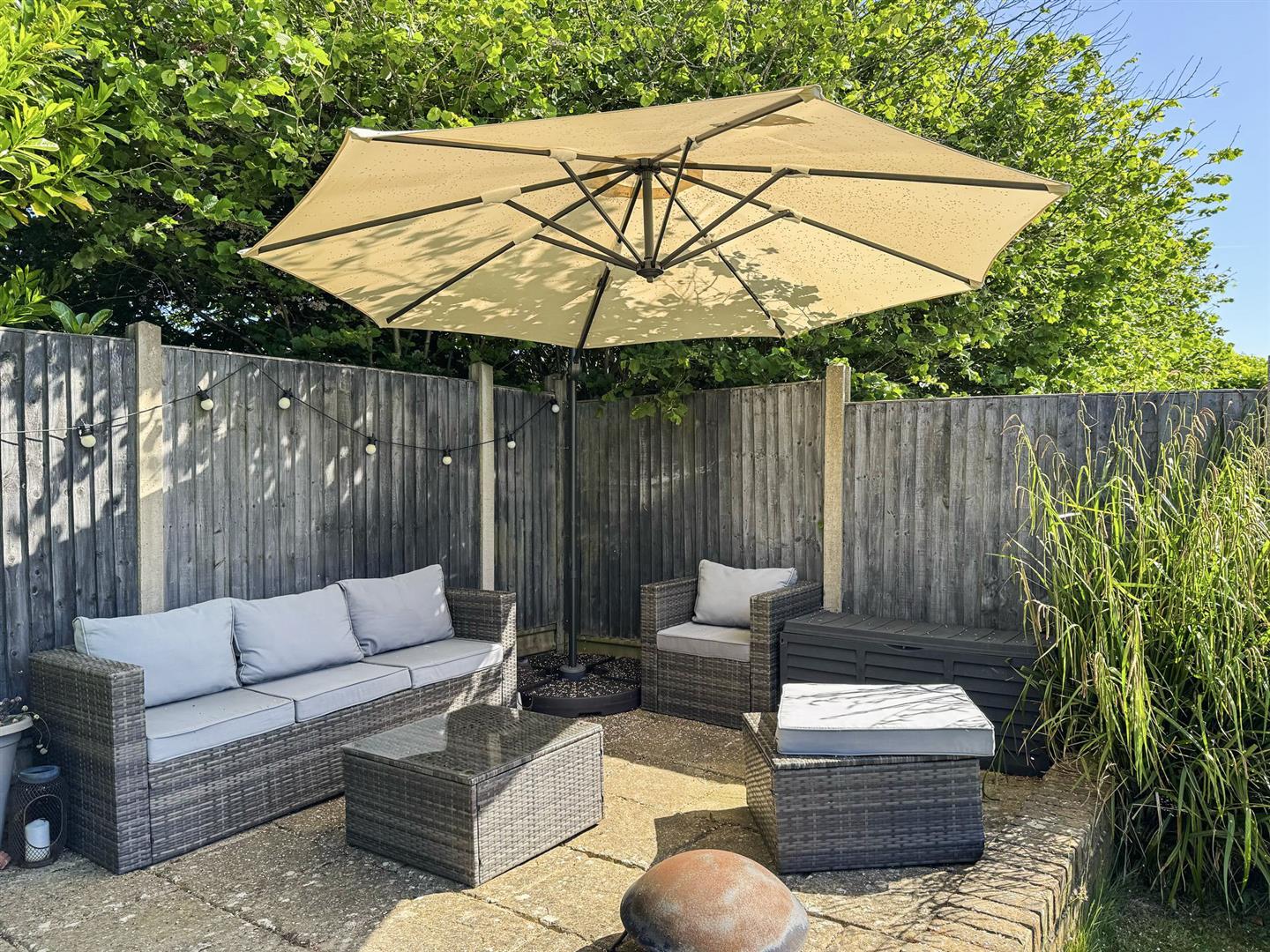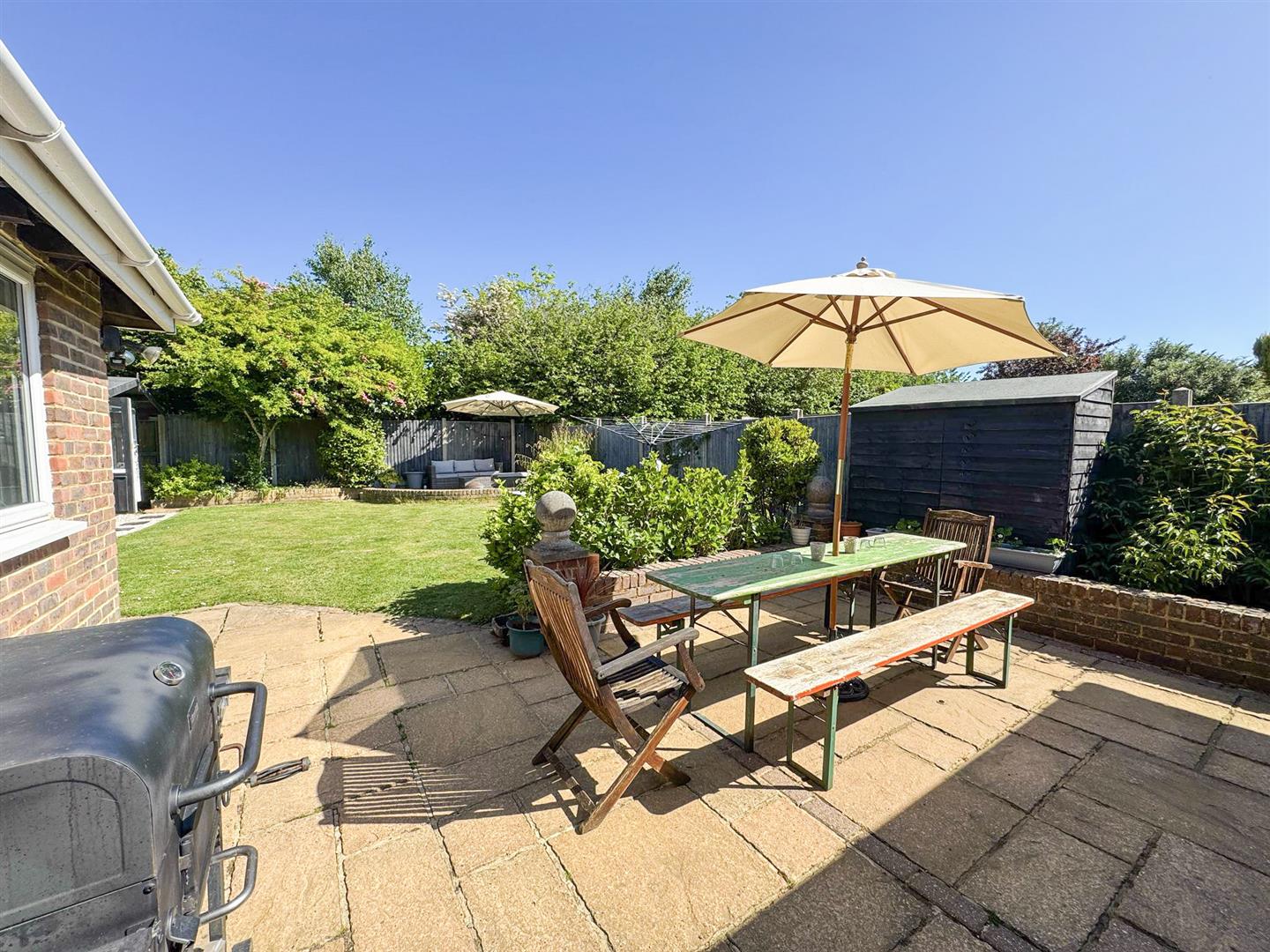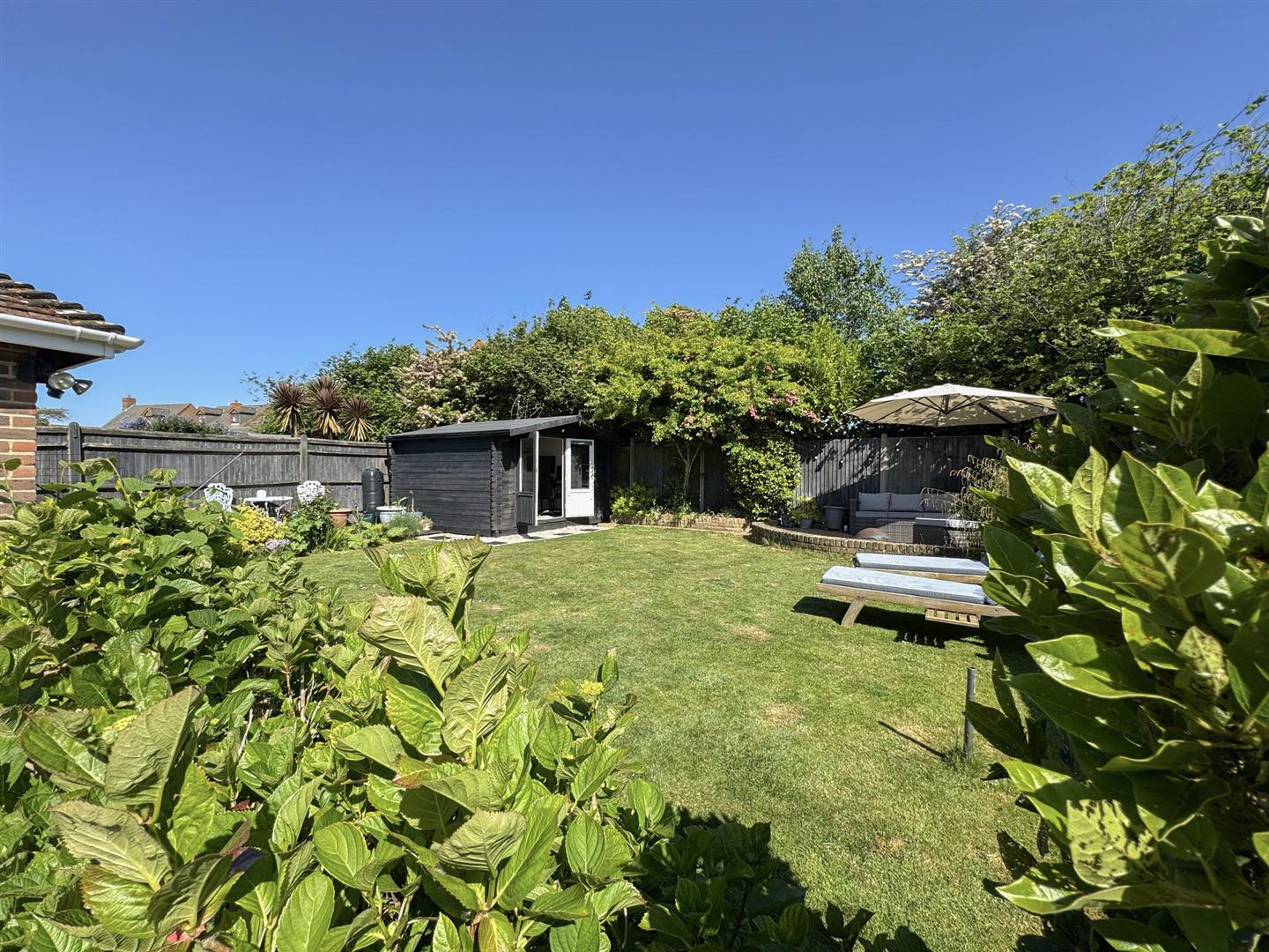The enclosed rear garden is a true highlight, offering a paved patio area directly off the property, a central lawn, an additional patio area to the rear, a decking area, garden storage shed, and an outbuilding with power, perfect for a home office or hobby room.