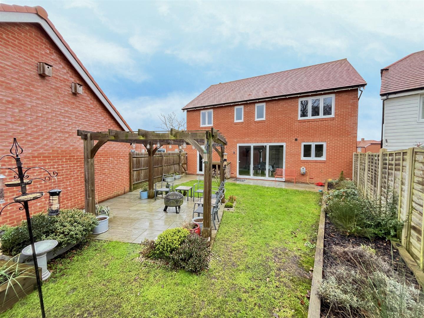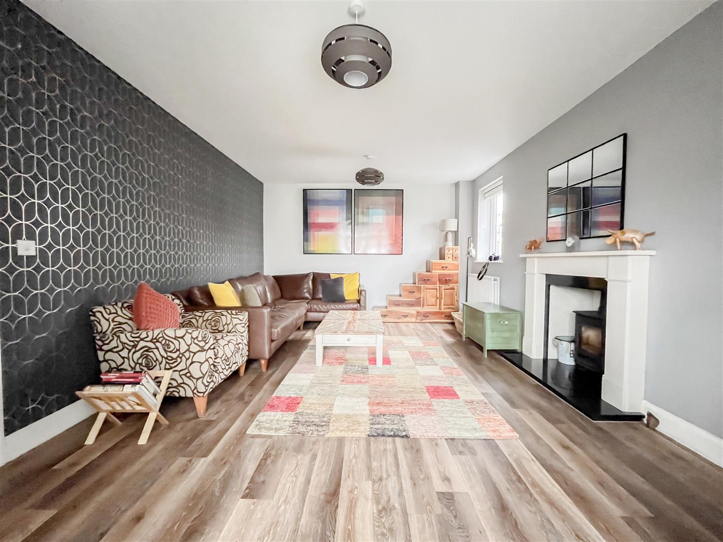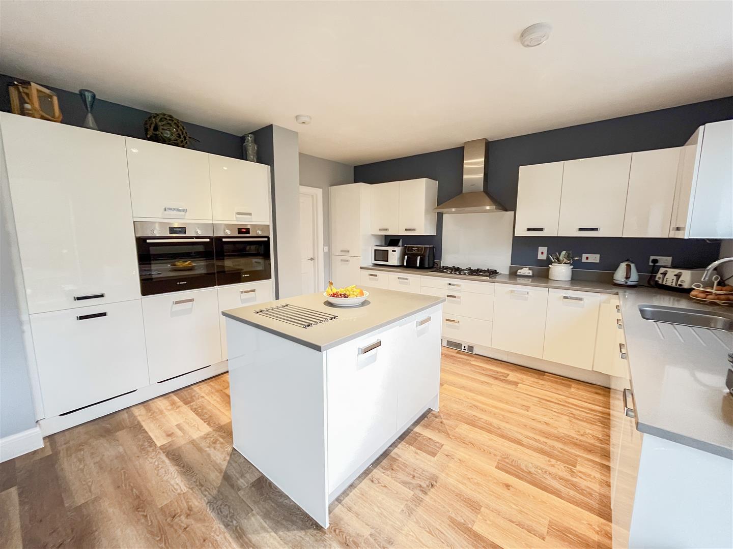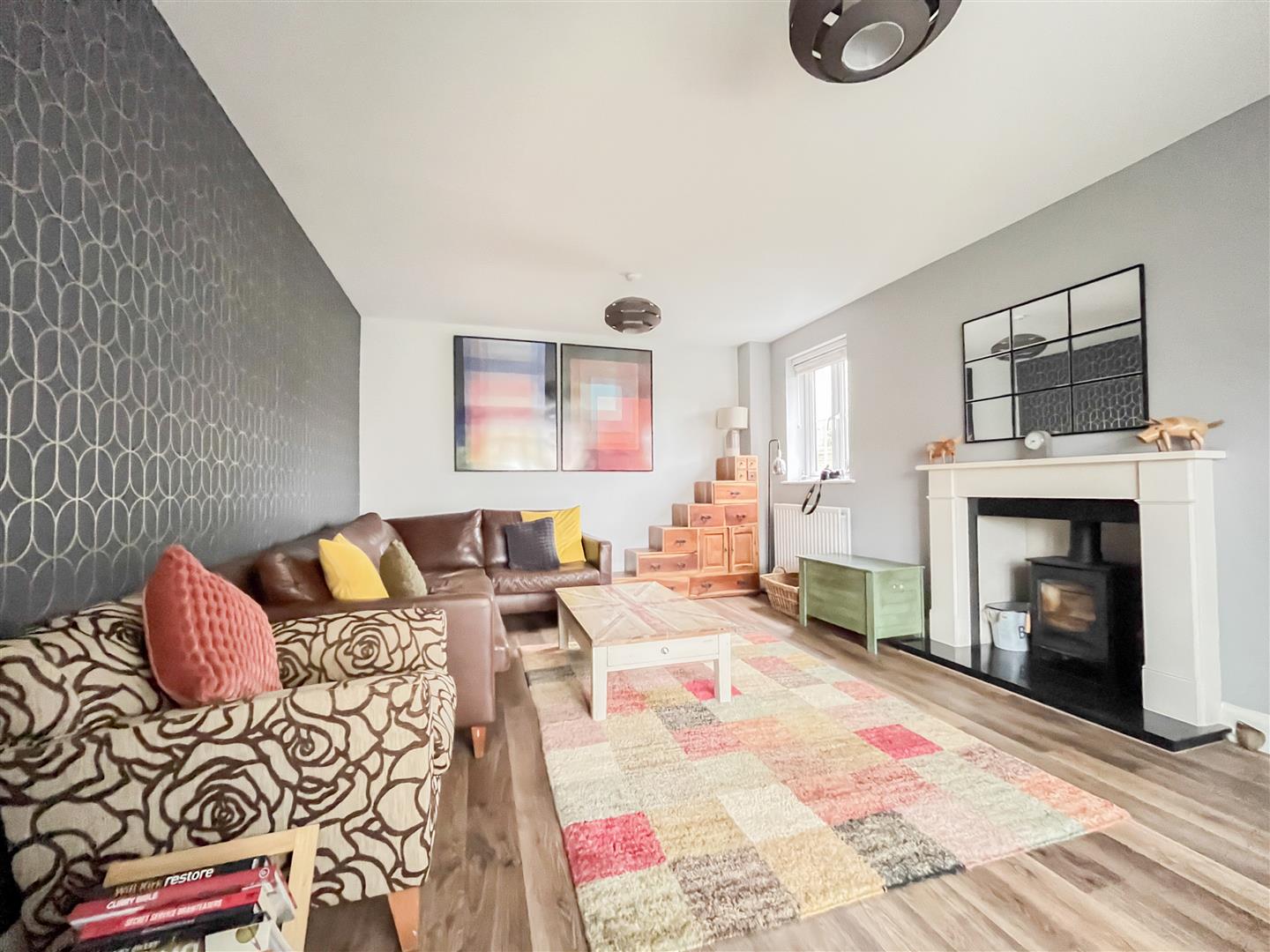 The accommodation is both modern and flexible, featuring two additional reception rooms ideal for use as a study and playroom, alongside a generous lounge with an attractive log burner. The heart of the home is the very large kitchen/diner, which benefits from bi-folding doors opening directly onto the rear garden, creating an excellent indoor-outdoor entertaining space. This is further complemented by a separate utility room and a convenient cloakroom.