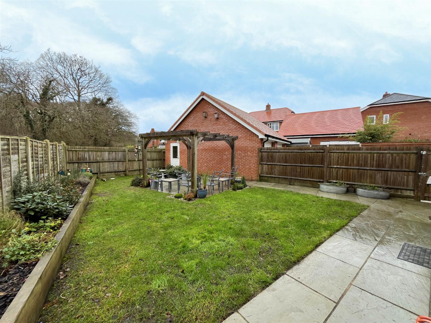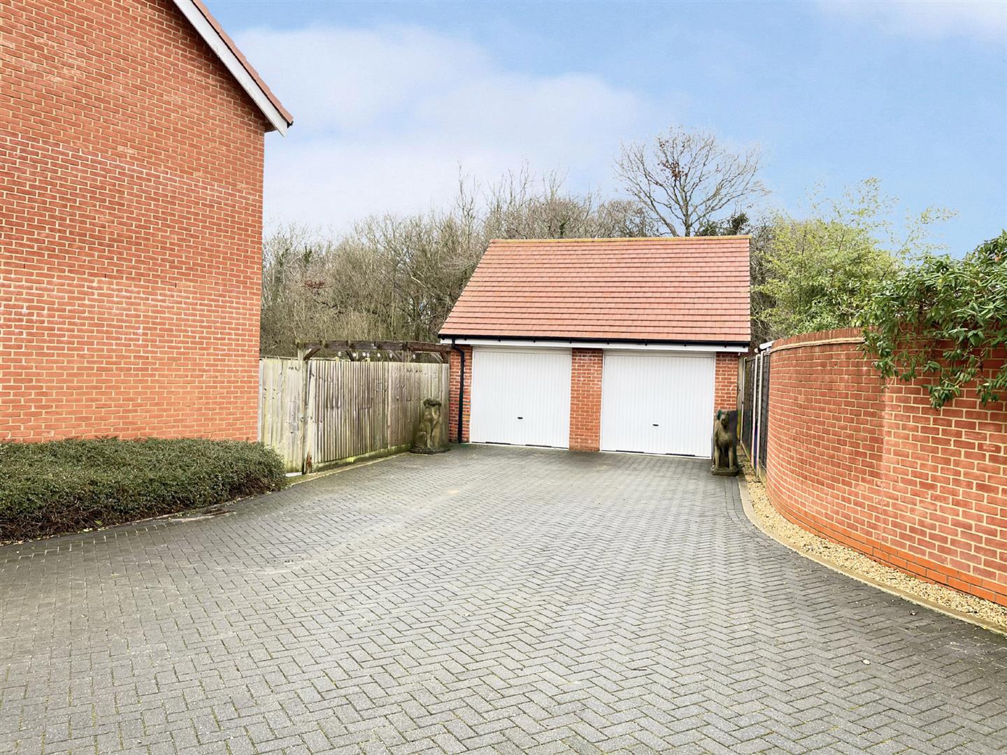 Externally, the property offers a double garage with electric up-and-over doors, electricity and mezzanine storage in the roof space, ample off-road parking, and excellent practicality with a side access gate to the garage and a rear access door from the garage into the garden. The rear garden is private and not overlooked, providing a peaceful and secluded outdoor space.