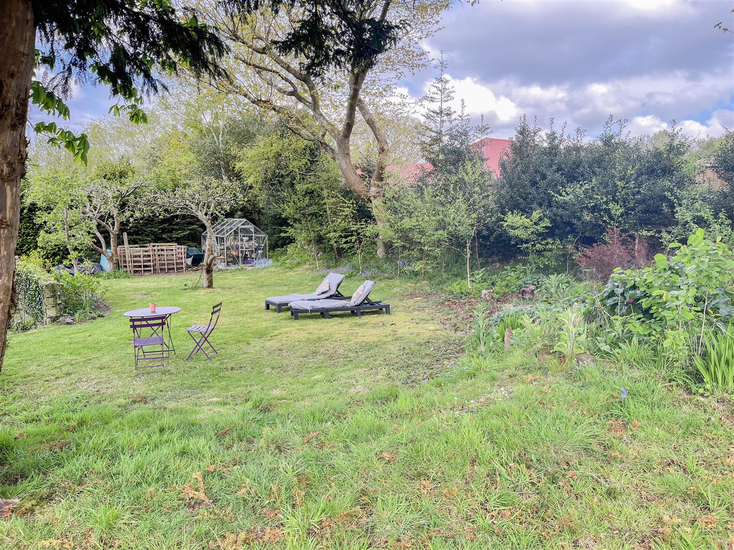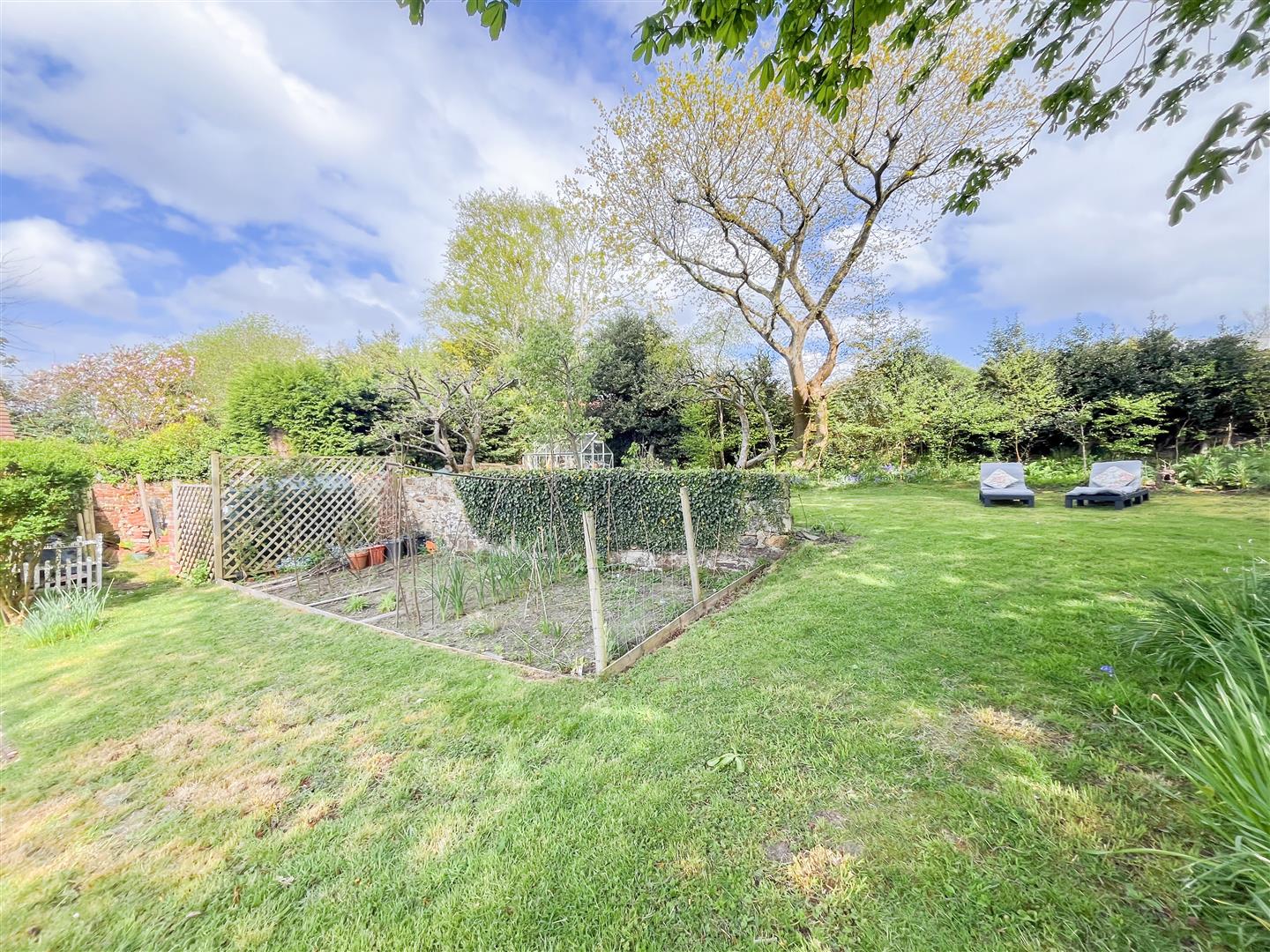 Backing onto open farmland, the property offers a driveway, garage and parking for several vehicles. The gardens are laid to level lawn with mature trees, shrubs, and a hedged boundary, along with a raised patio, a former outbuilding now used as a seating area, and an enclosed brick-walled area behind the garage - ideal for storing many outdoor items.