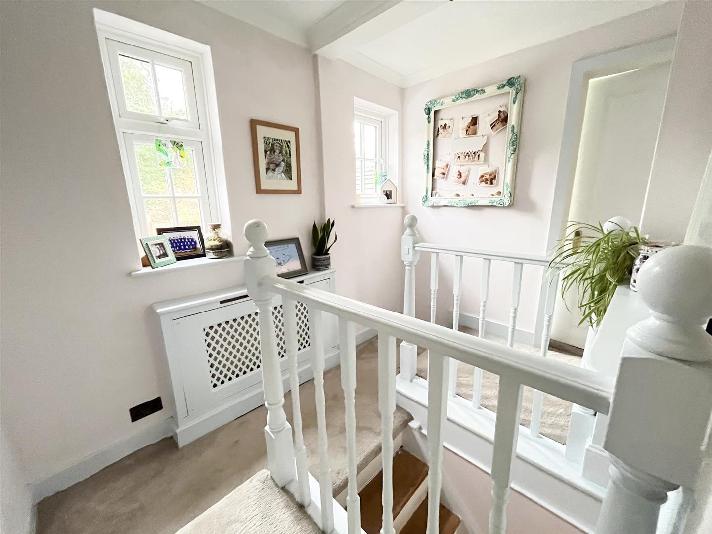 Upstairs, there are three well-proportioned bedrooms, including two generous doubles and a large single, each with delightful views over the surrounding countryside. The family bathroom is elegantly appointed and features a luxurious freestanding roll-top bath, perfect for unwinding at the end of the day.