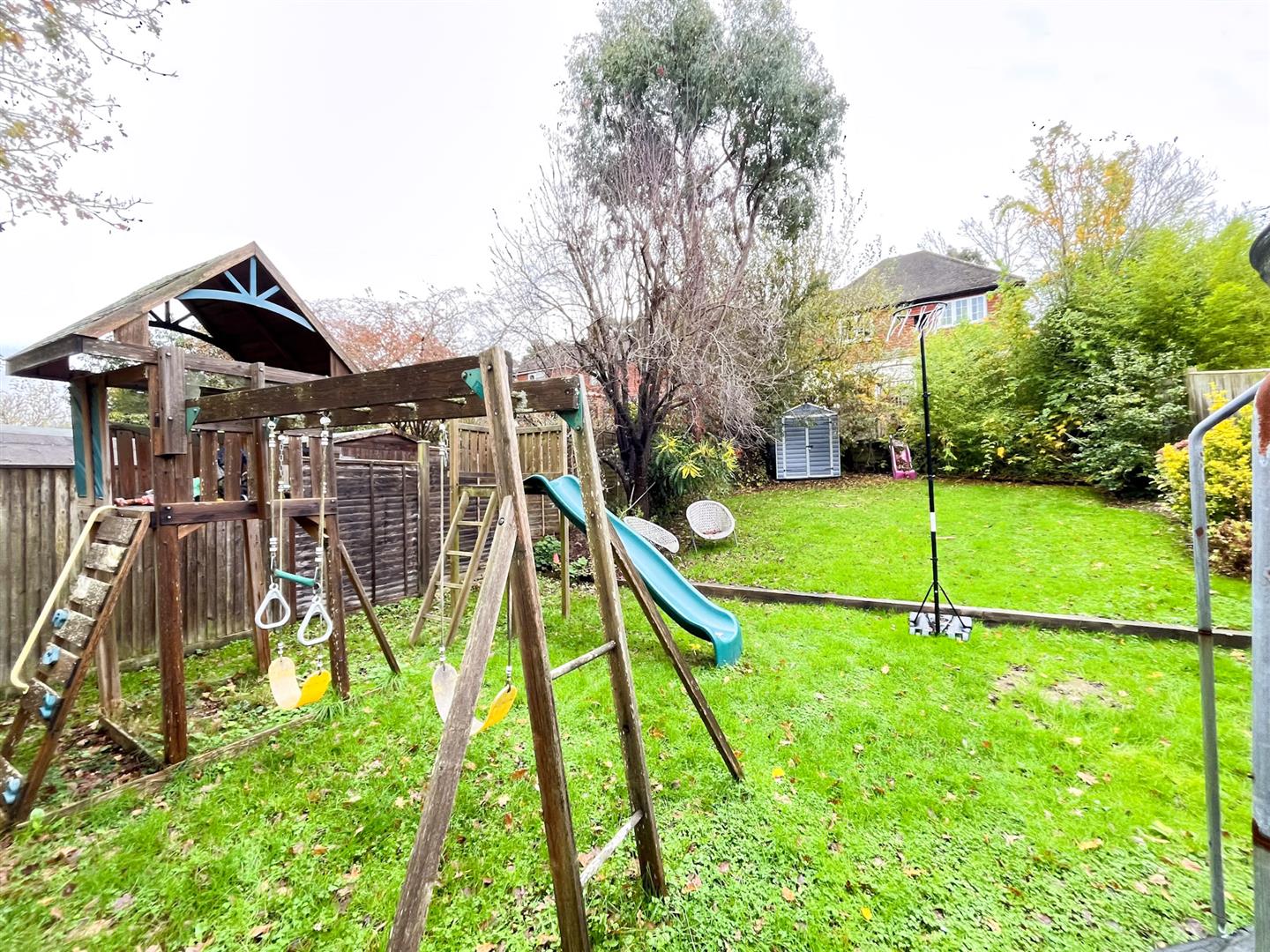 The rear garden is a standout feature of the property, offering breathtaking countryside views from every angle. It includes a raised decked terrace, ideal for outdoor dining or entertaining, along with a lawned area bordered by mature shrubs and trees, providing year-round colour and privacy.