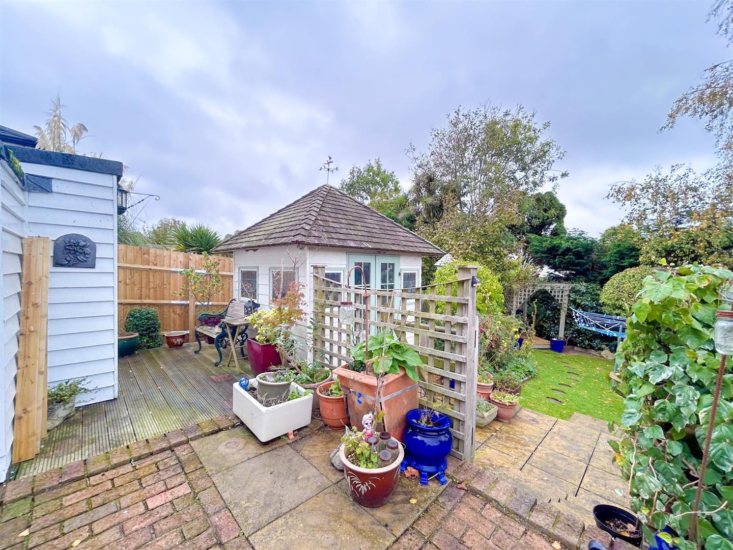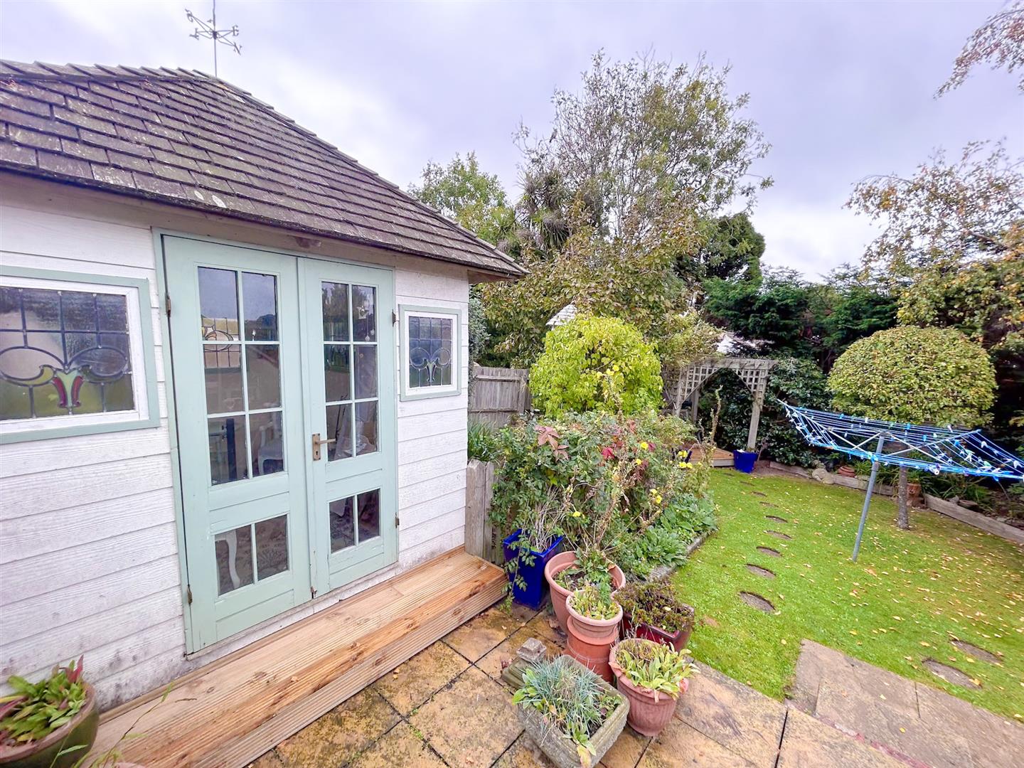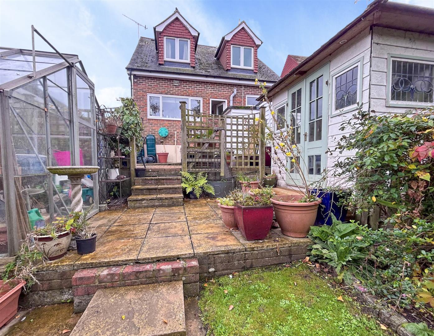 The modern kitchen overlooks the established rear garden, which is full of character and includes a summerhouse, workshop, and ample storage.