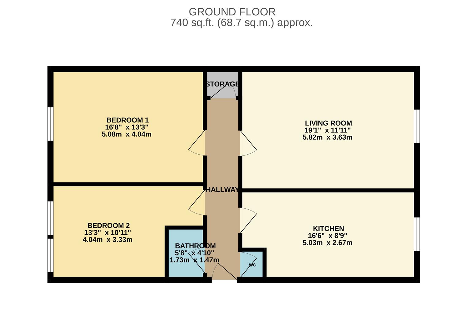 The flat comprises two generously sized double bedrooms, both offering plenty of room for furnishings and storage. The living accommodation is particularly spacious, providing a versatile area for relaxing and entertaining, while still benefiting from a bright and airy feel despite its basement setting.