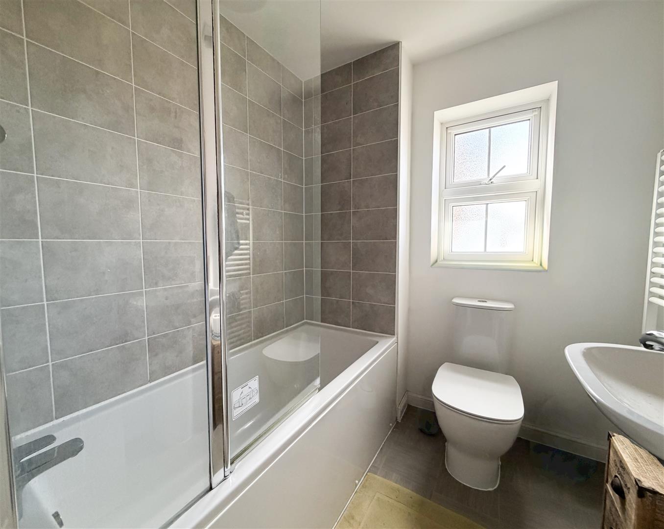 - Family bathroom with shower over bath