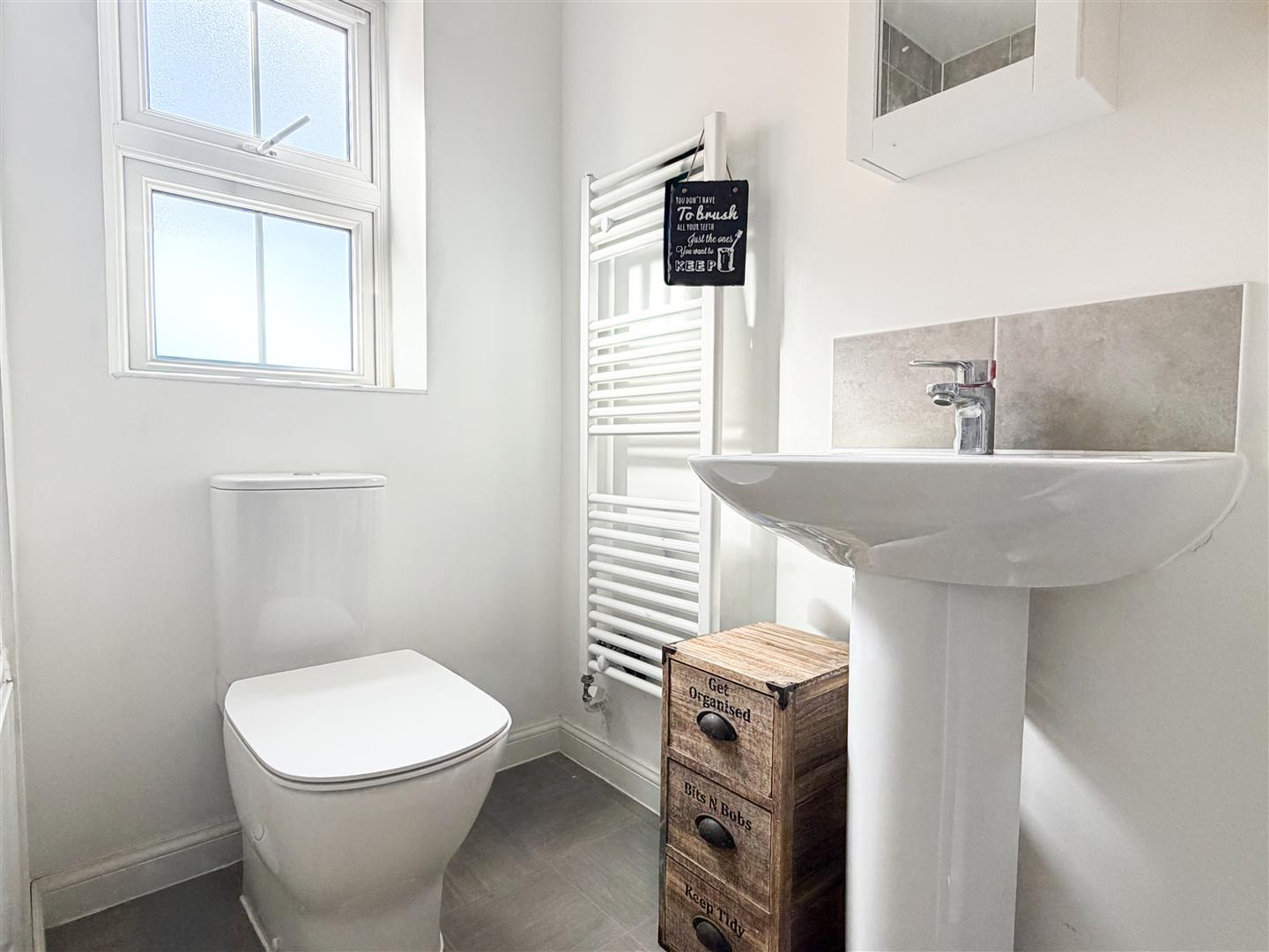 Upstairs, the property offers three well-proportioned bedrooms. The principal bedroom benefits from its own en-suite shower room, while a rear bedroom enjoys pleasant views towards the South Downs, adding a scenic touch to everyday living. A contemporary family bathroom with a shower over the bath serves the remaining bedrooms.