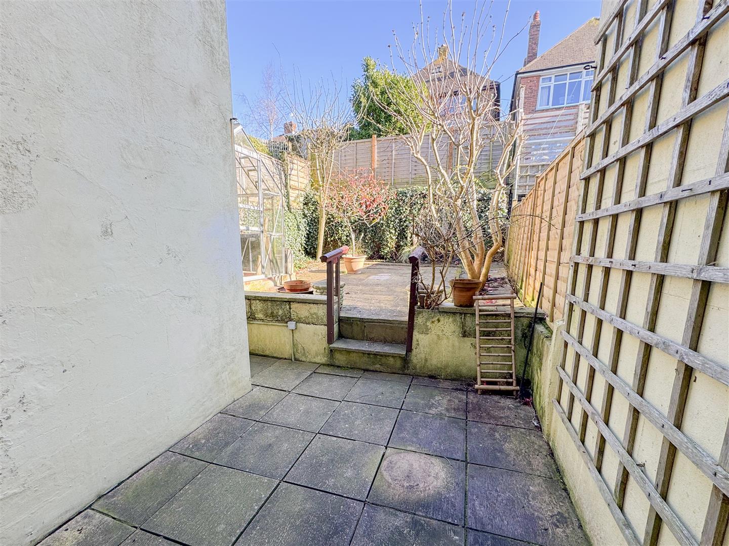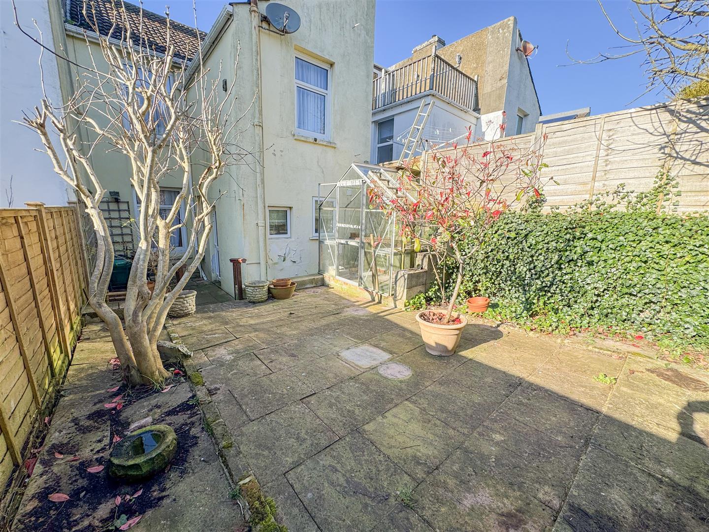 The enclosed rear garden has been designed for low maintenance, creating a private outdoor space with potential to enhance further.