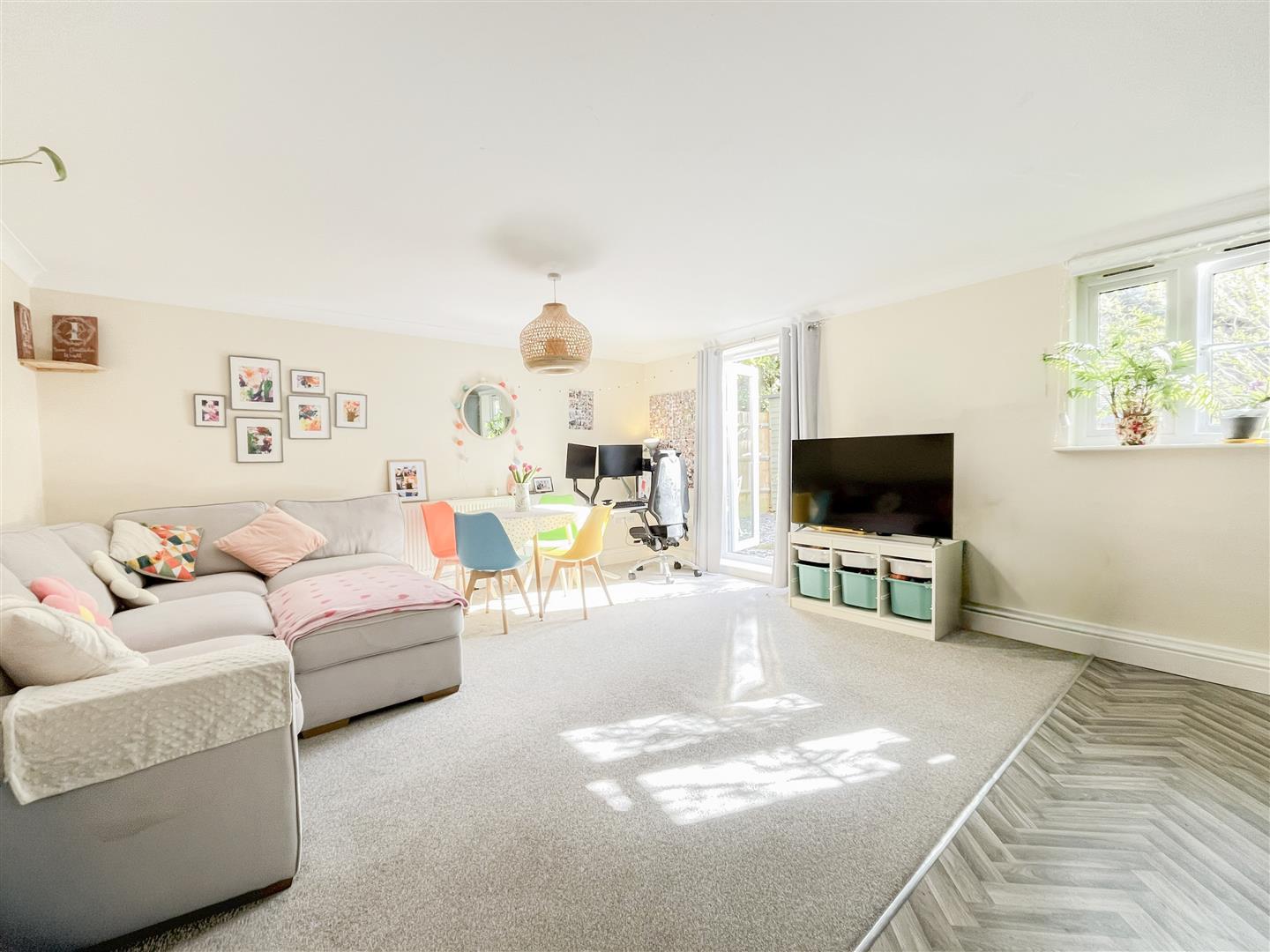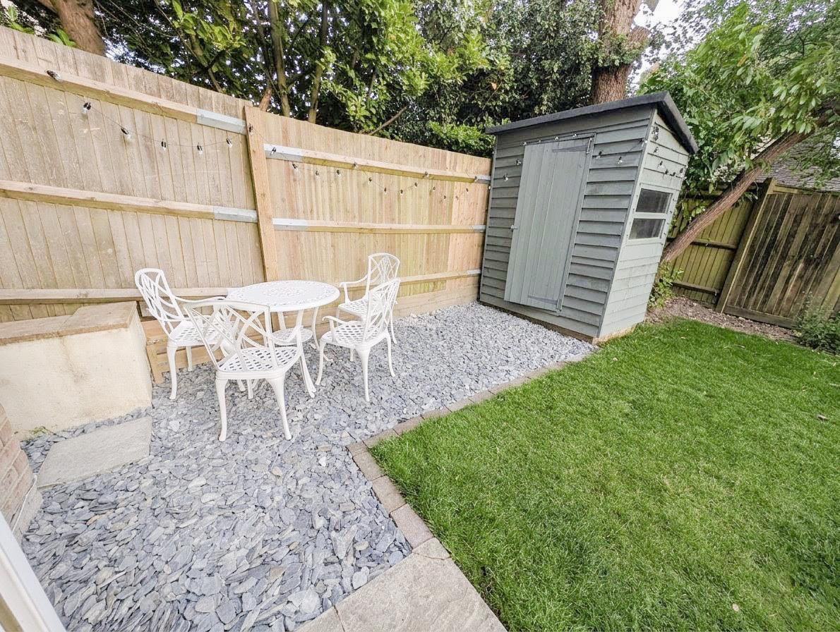 Externally, the property truly comes into its own with a south-facing private garden featuring a sunny lawn, a practical garden shed, and a stony seating area perfect for summer dining, all accessed via French doors for seamless indoor-outdoor living. To the front of the property, there is the added benefit of allocated parking.