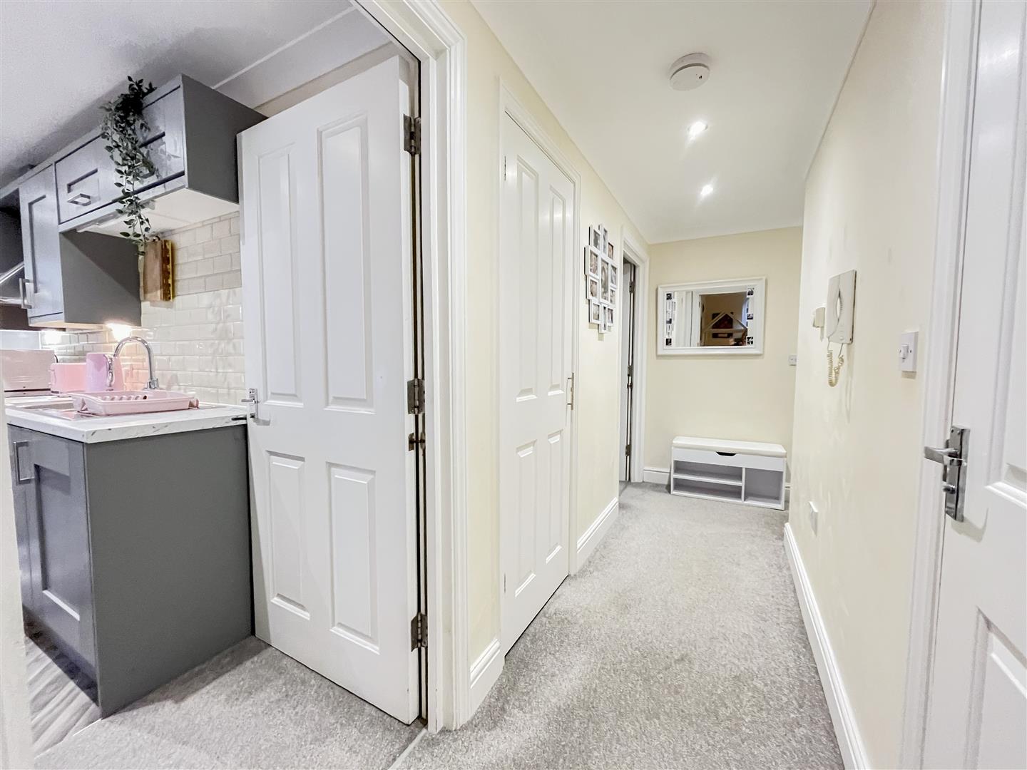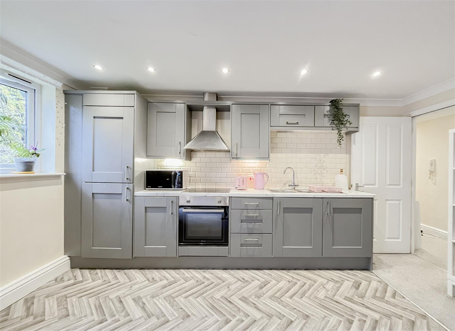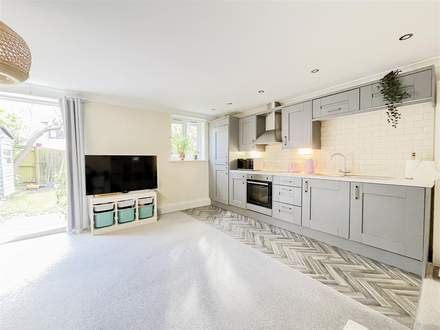 Internally, the property features a bright and spacious open-plan living area with a modern kitchen fitted with grey shaker-style units and integrated appliances, creating a practical and stylish space for everyday living. There are two well-proportioned double bedrooms and a family bathroom. A brand new fitted Worcester Bosch boiler has also been fitted and includes a 10 year warranty on parts and labour.