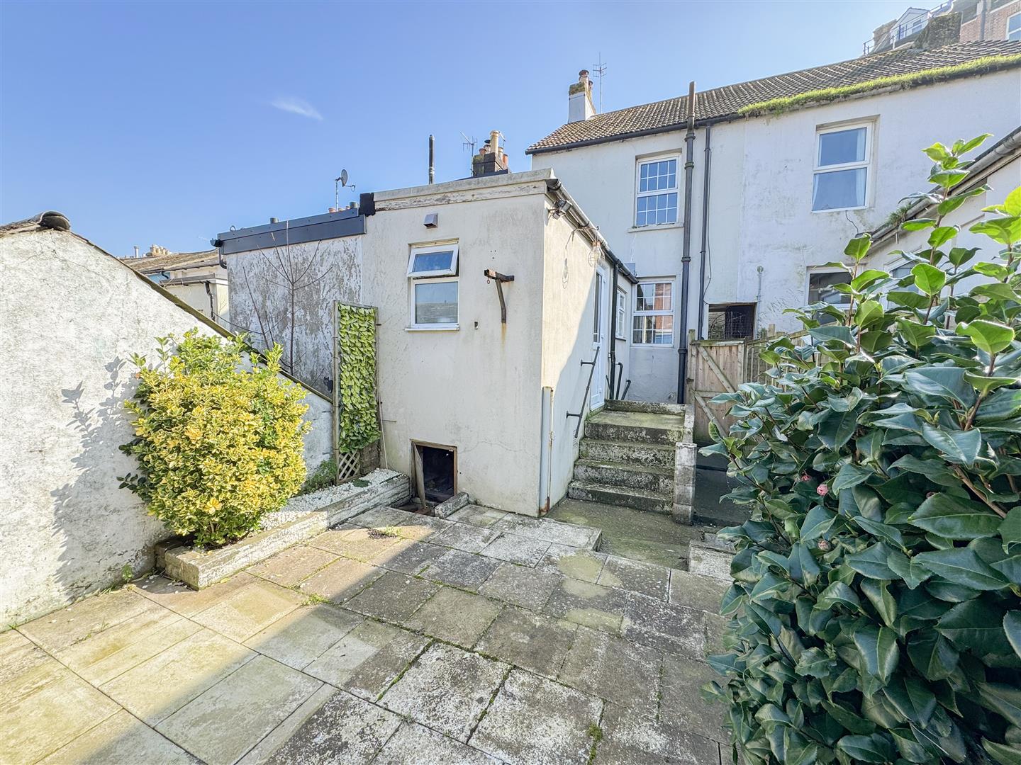 Externally, the property benefits from a low-maintenance courtyard-style garden, which is paved and enjoys a sunny aspect, a real sun trap and perfect for outdoor dining or relaxing with table and chairs.
