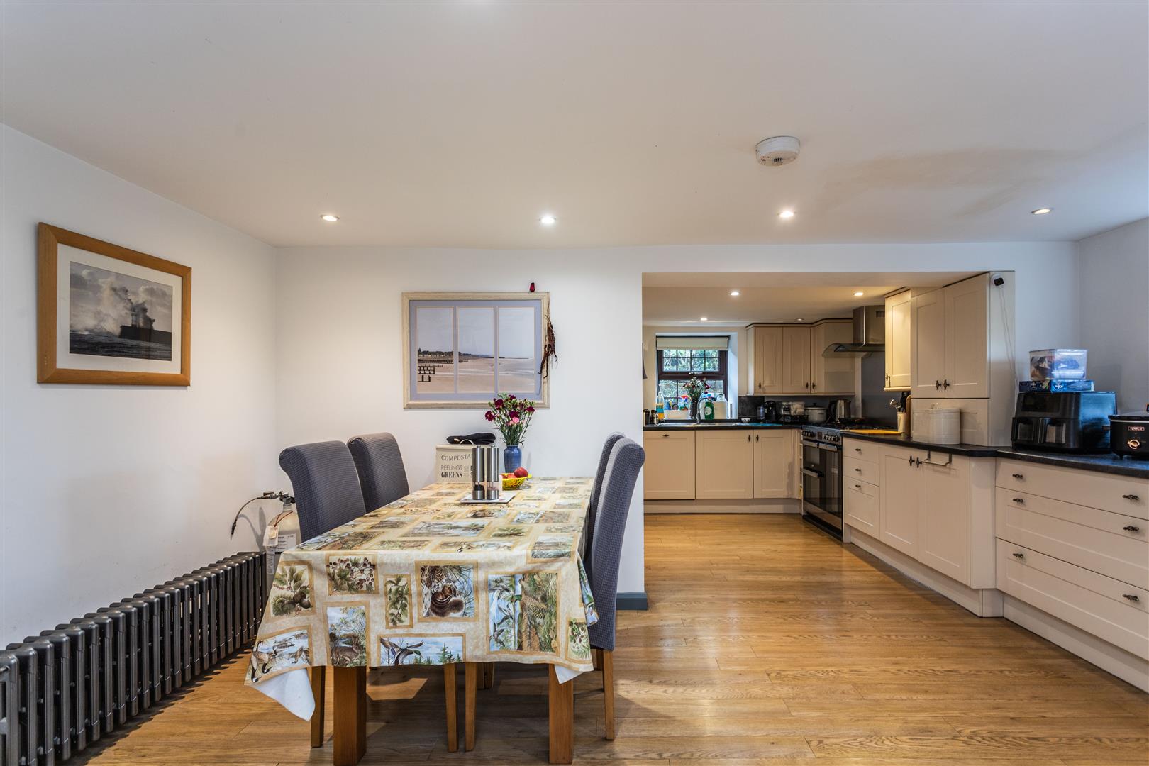 The accommodation is both generous and flexible, with a welcoming main reception room centred around a woodburning stove, creating a cosy focal point. A conservatory provides additional living space, enjoying views over the garden, while the interiors have been tastefully modernised to offer a comfortable and inviting environment.