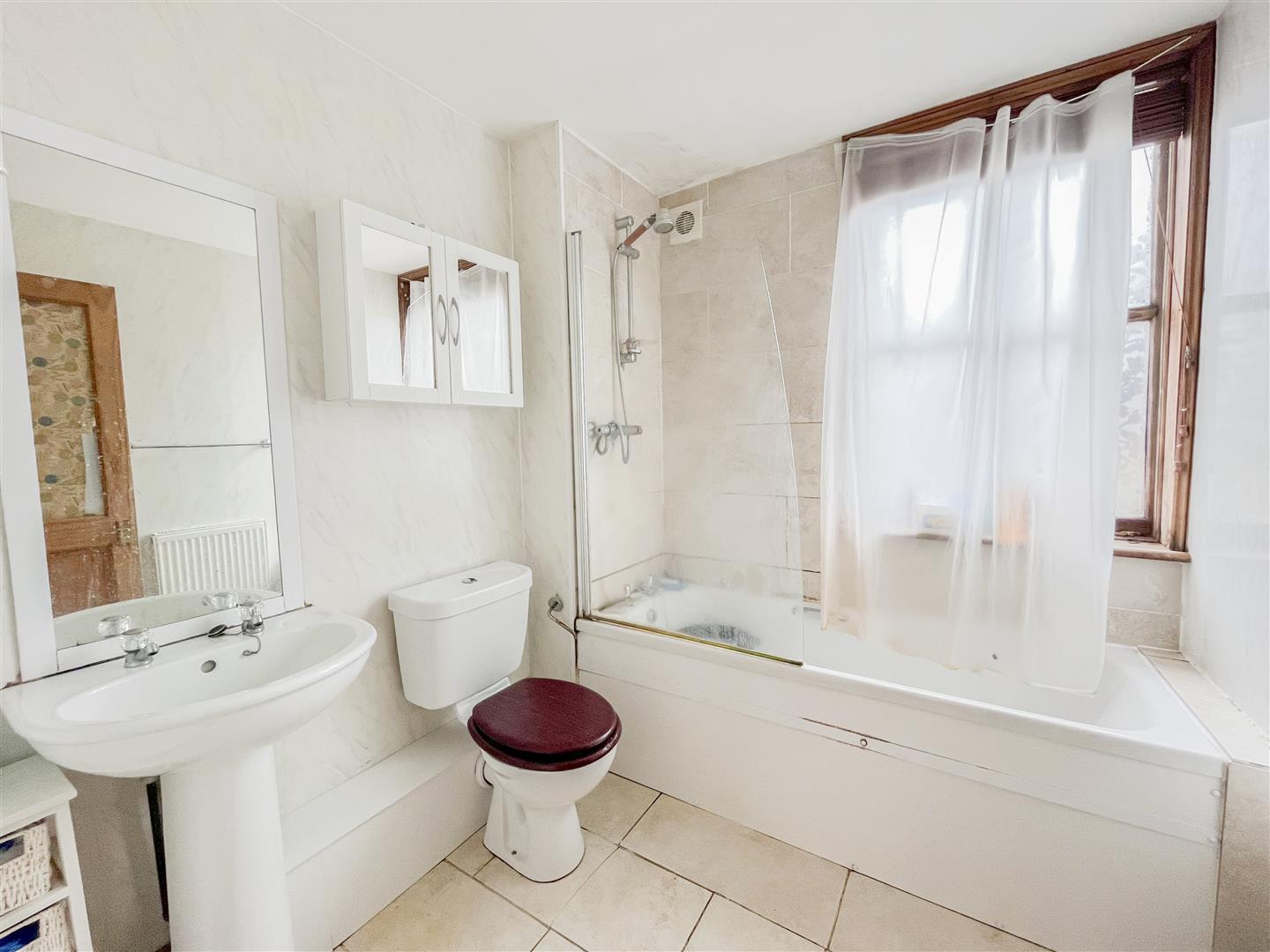 - Spacious bathroom with shower over bath