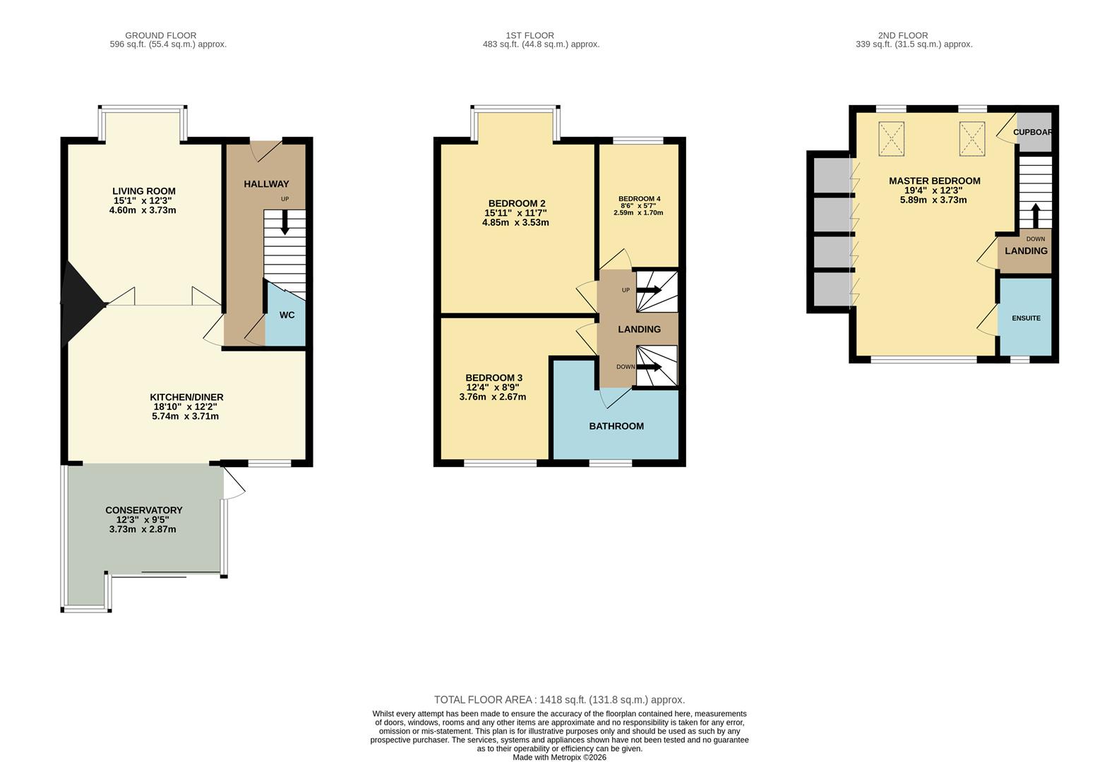 Master Bedroom 5.89m max x 3.73m max (19'4" max x 12'3" max )