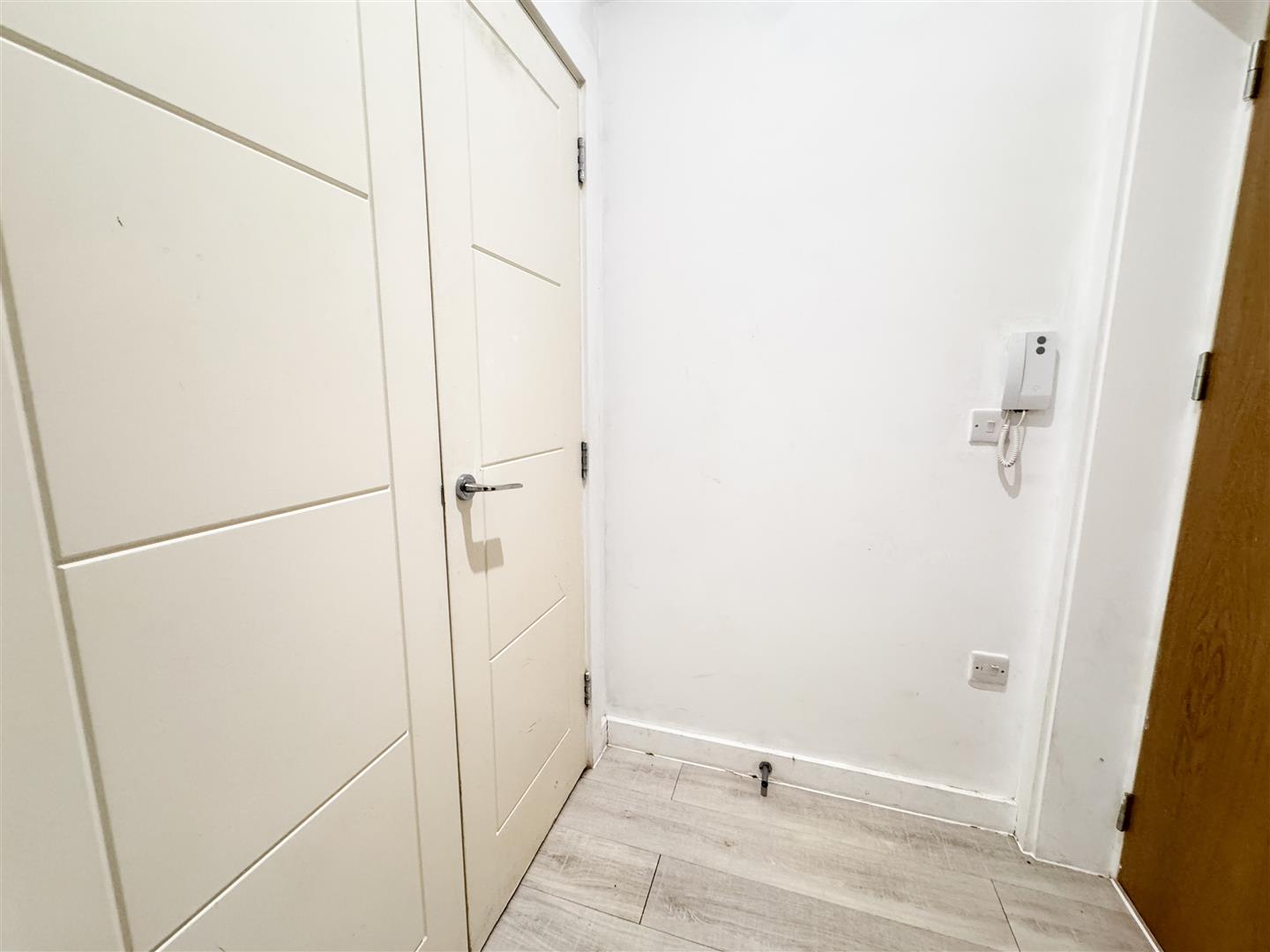 The apartment also benefits from a modern shower room, electric heating, and useful built-in storage located in the entrance lobby, ideal for keeping the living space organised.