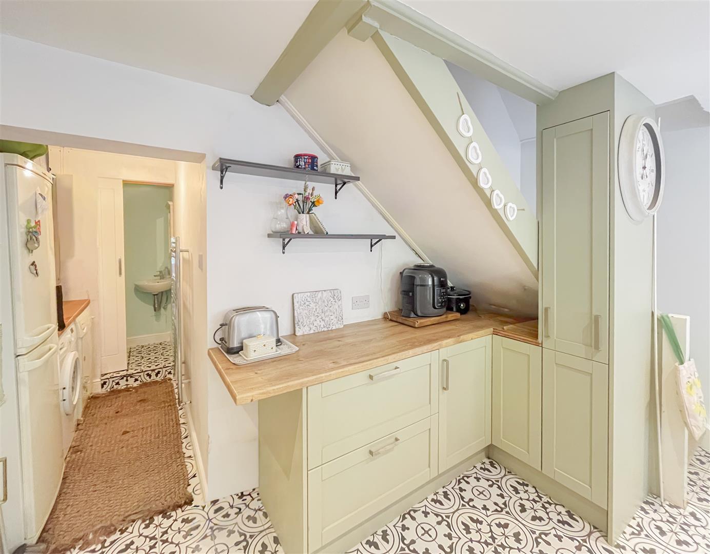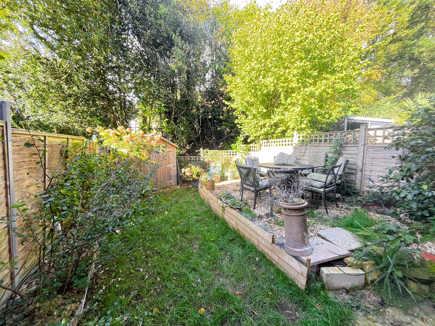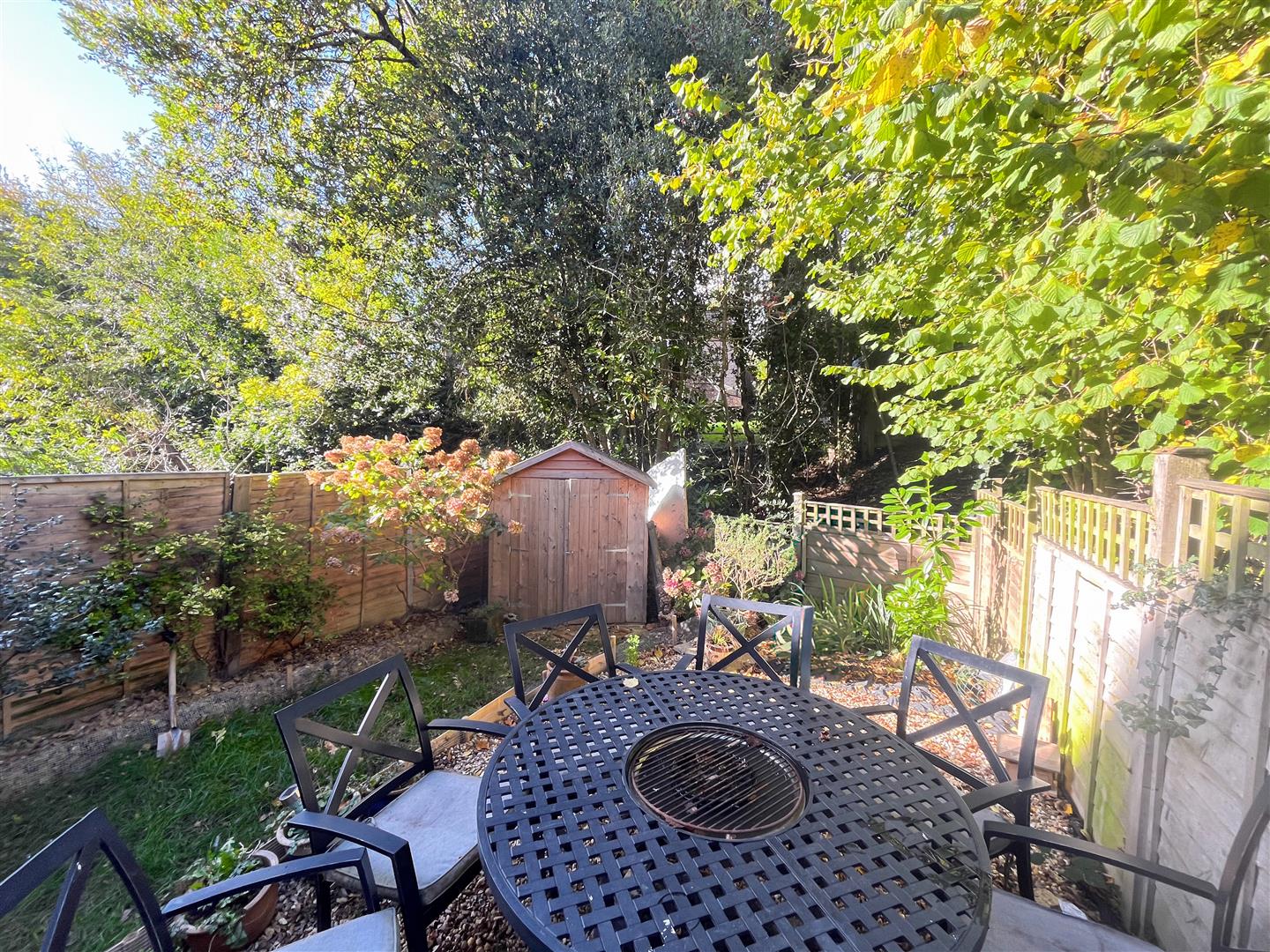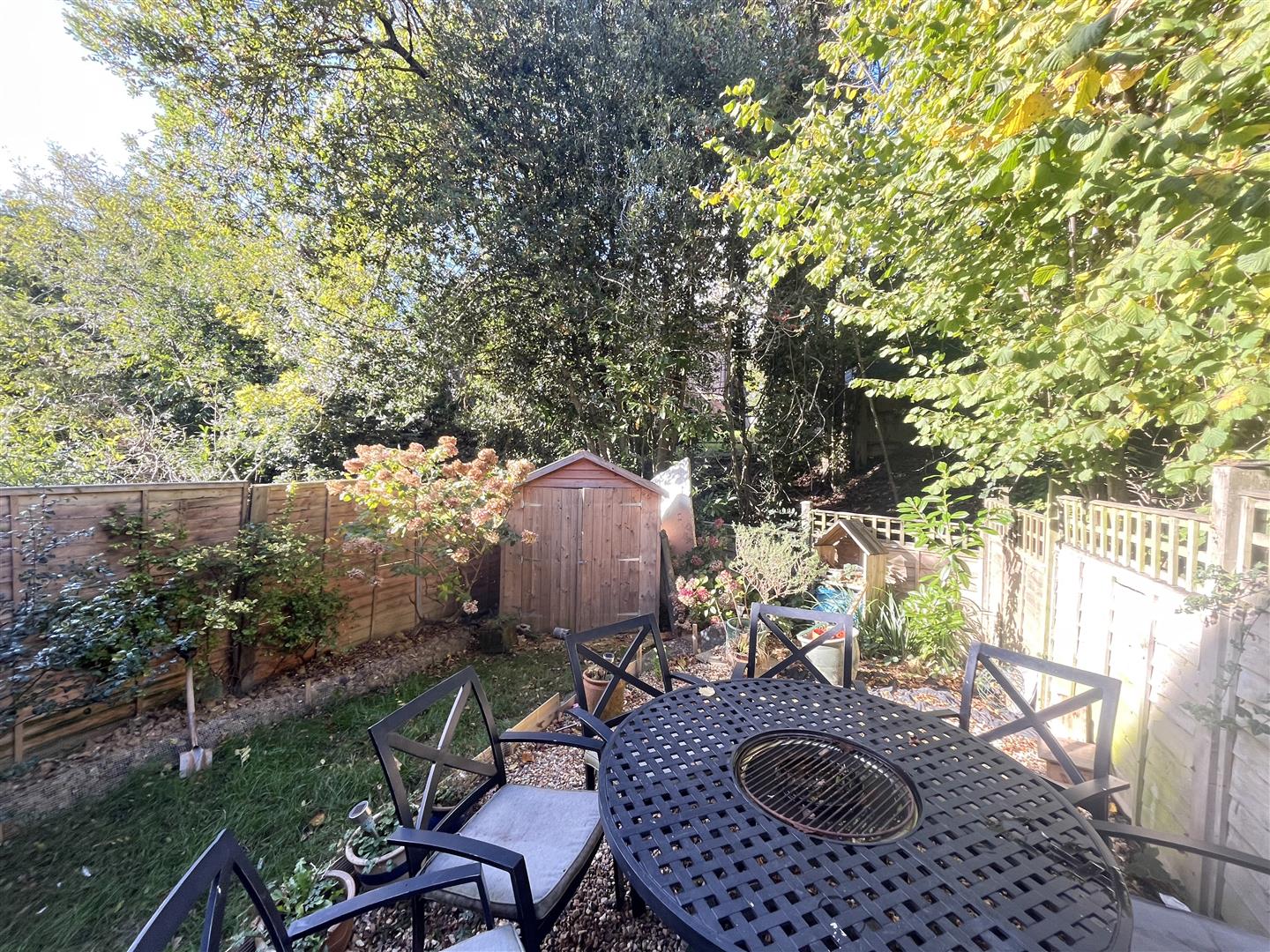 Outside, the property is approached via its own private driveway. The rear garden has been thoughtfully designed for ease of maintenance and enjoyment. It features an area laid to lawn, a small patio perfect for outdoor dining or morning coffee, and a delightful outlook over a gentle stream that runs along the bottom of the garden. The setting is peaceful, private, and not overlooked, providing a wonderful retreat to relax and enjoy the tranquil surroundings. A garden shed offers additional storage, and side access completes the picture.